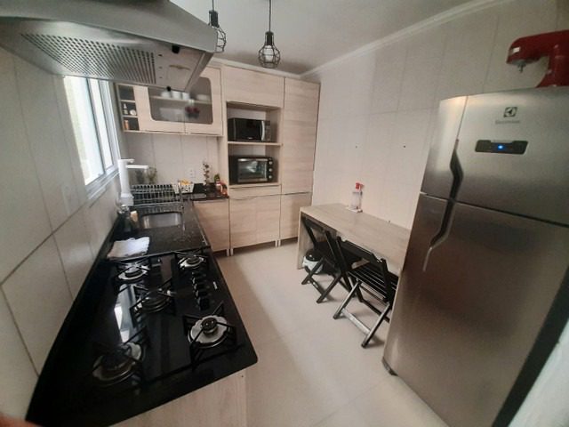 com 2 dormitórios, sala, cozinha com moveis planejados, banheiro, patio interno com cobertura movel, churrasqueira e moveis planejados, 1 vaga de garagem.