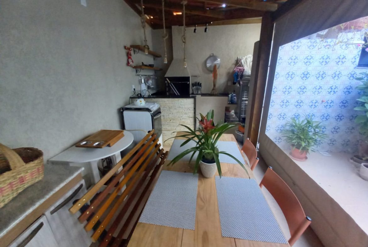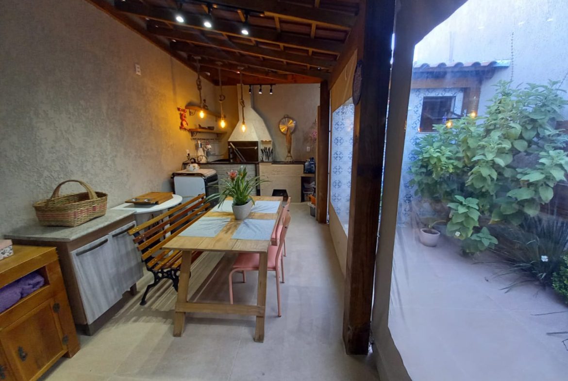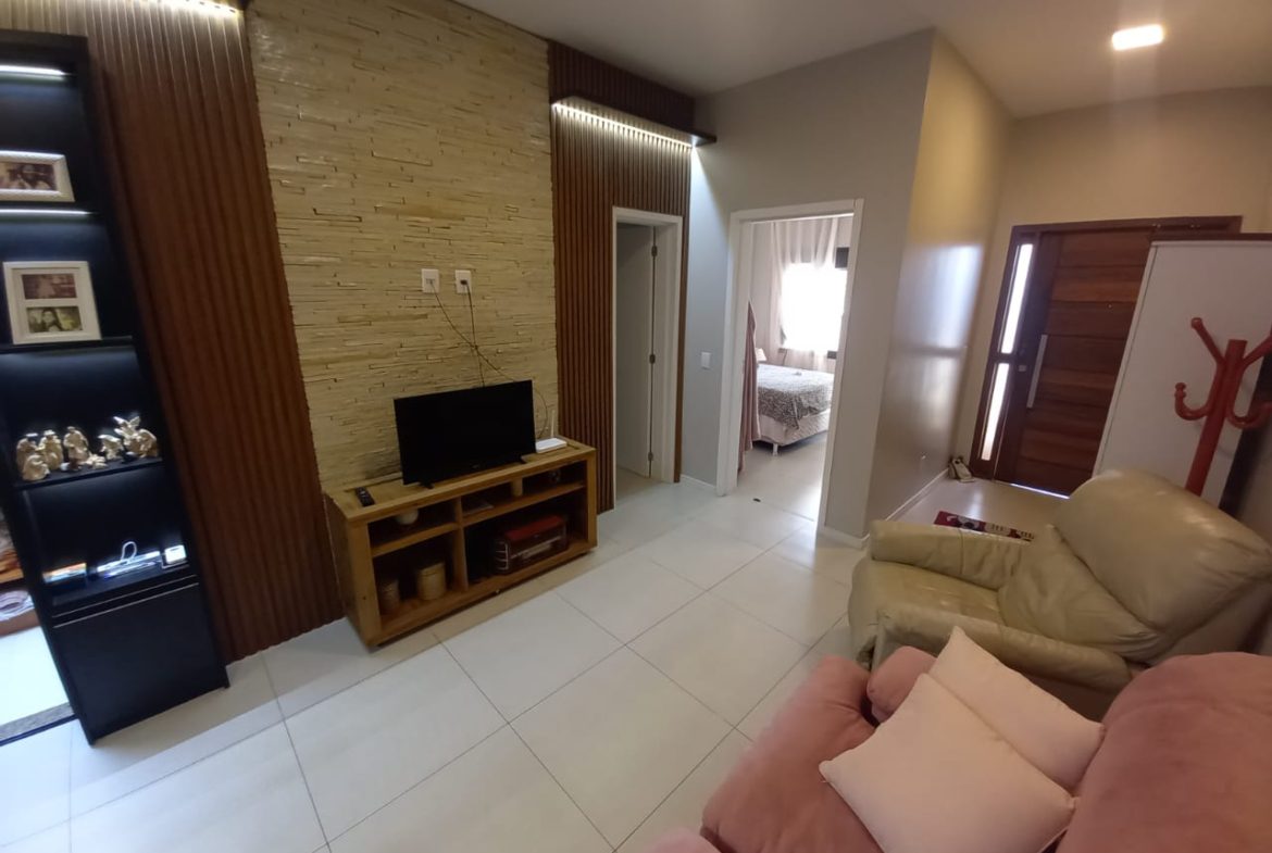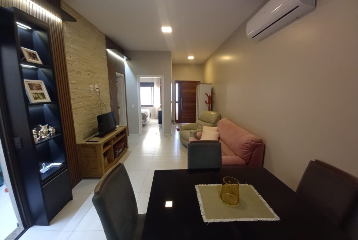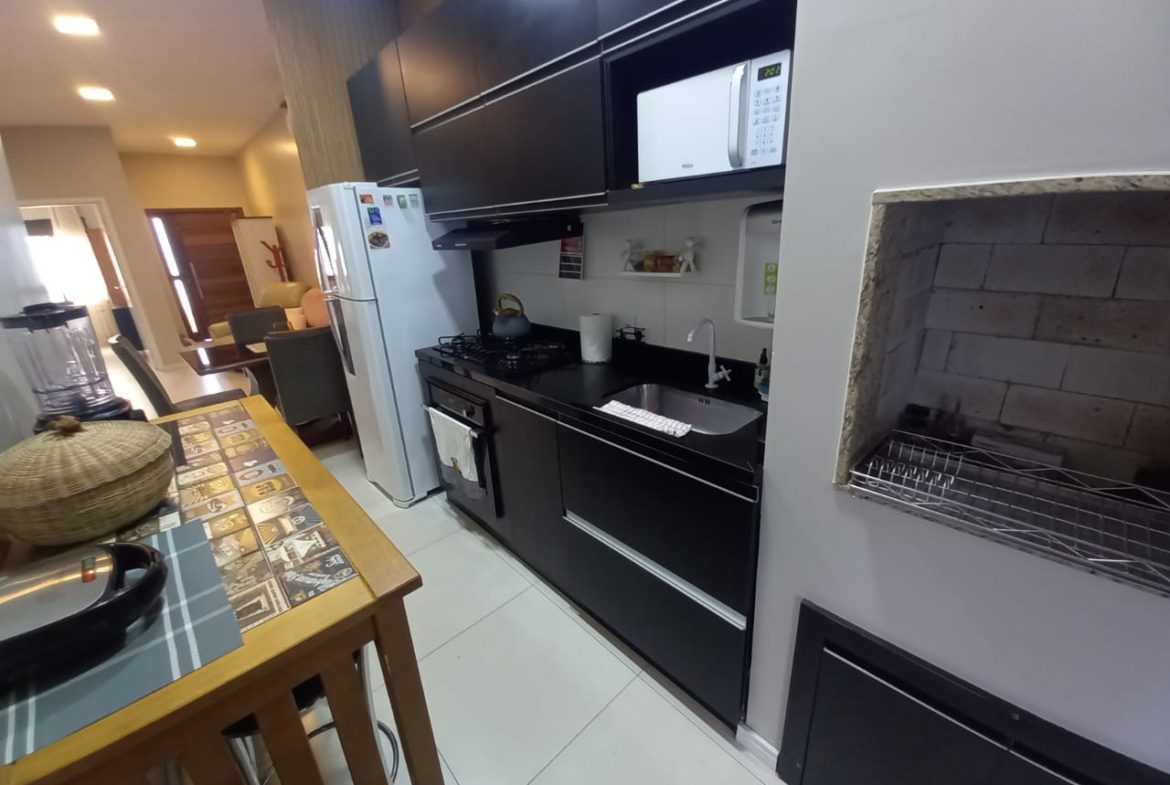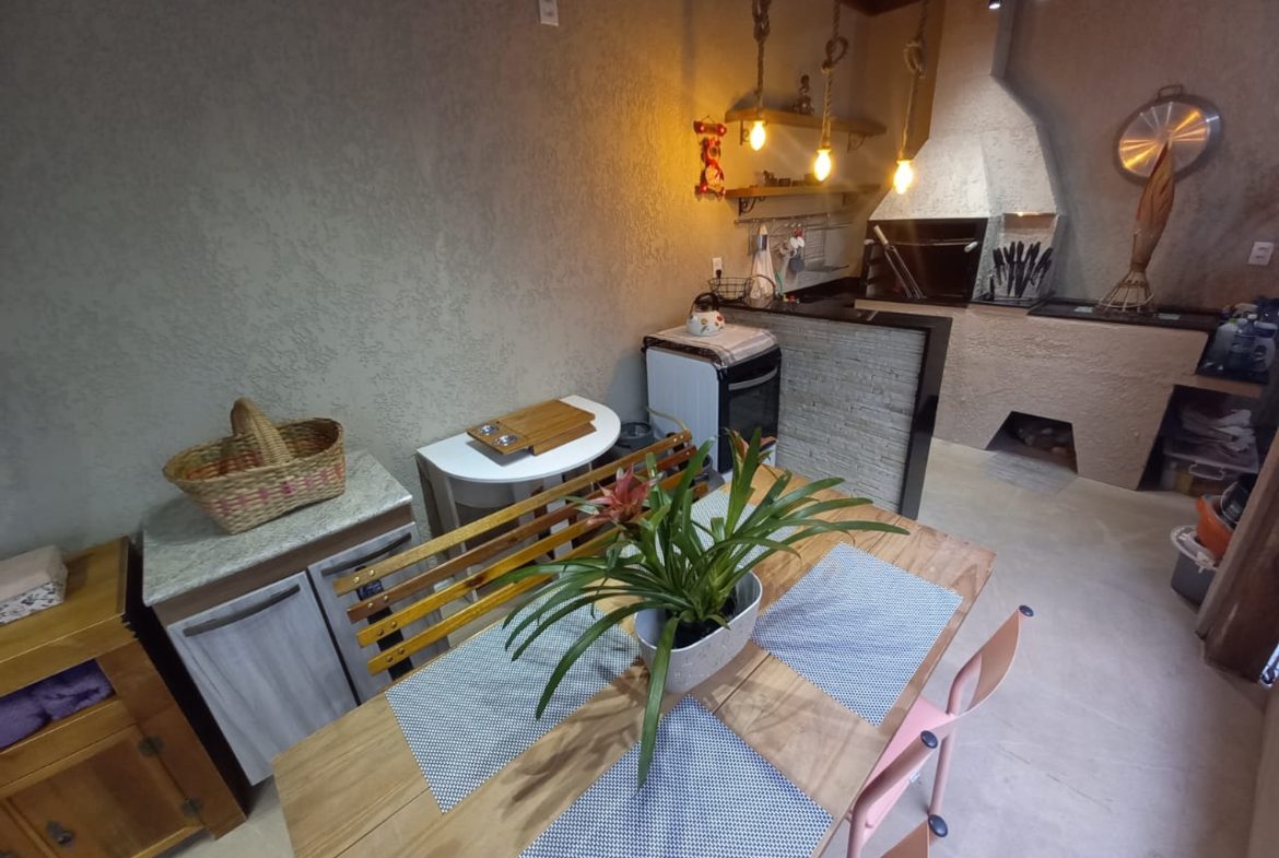 casa térrea com 2 dormitórios, sala com lareira, área de luz interna, banheiro social, cozinha planejada, espaço gourmet com churrasqueira e fogão a lenha, lavanderia, banheiro auxiliar, pátio pequeno, garagem 2 carros, split, possui estrutura pra 2º pavimento, aceita financiamento, agende uma visita!