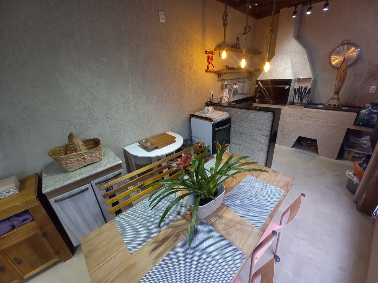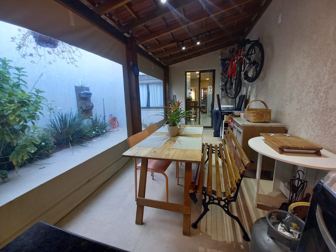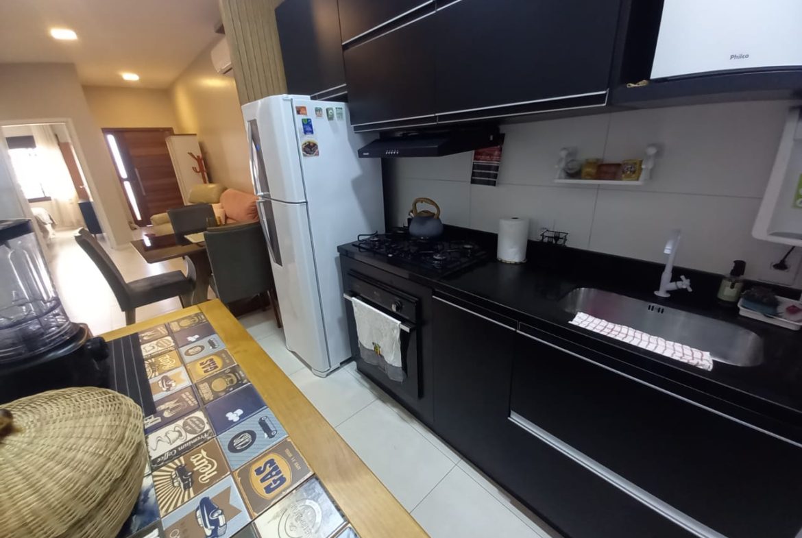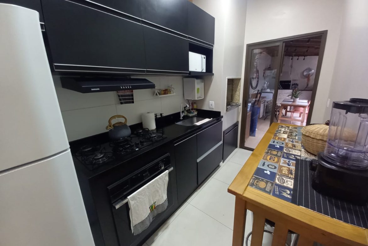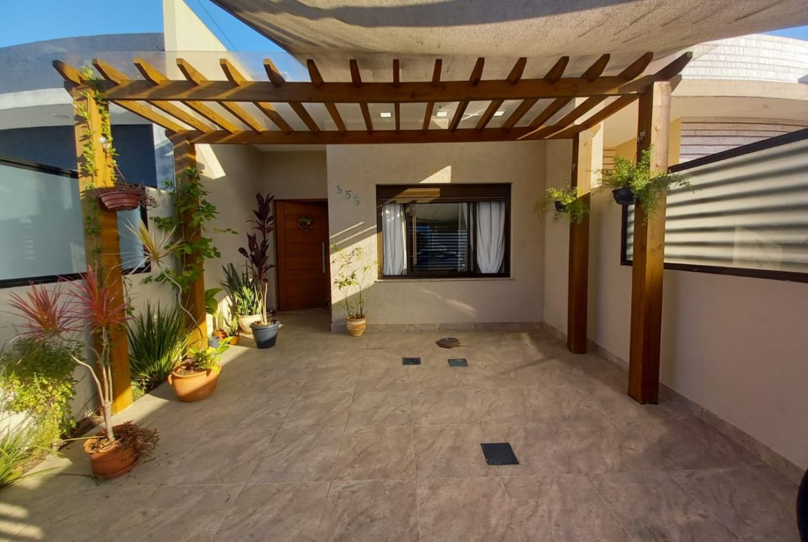 casa térrea com 2 dormitórios, sala com lareira, área de luz interna, banheiro social, cozinha planejada, espaço gourmet com churrasqueira e fogão a lenha, lavanderia, banheiro auxiliar, pátio pequeno, garagem 2 carros, split, possui estrutura pra 2º pavimento, aceita financiamento, agende uma visita!