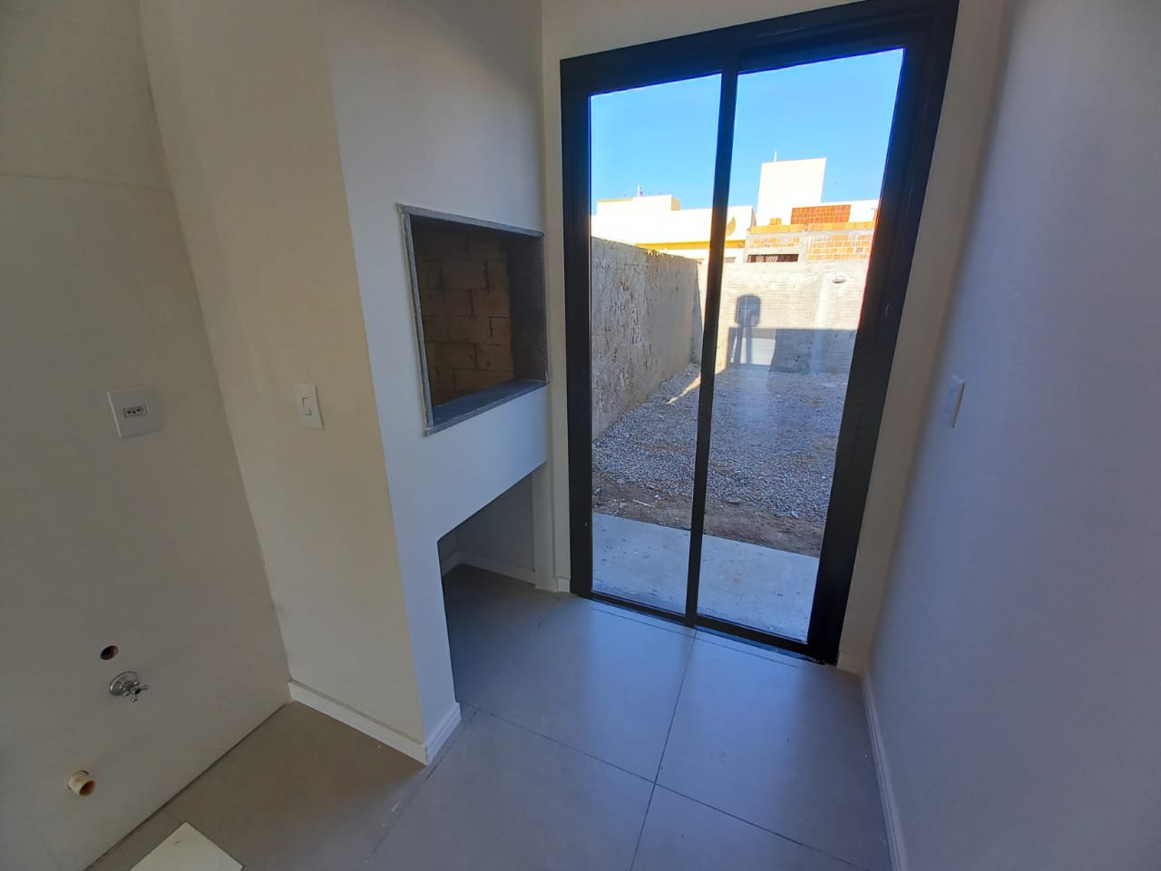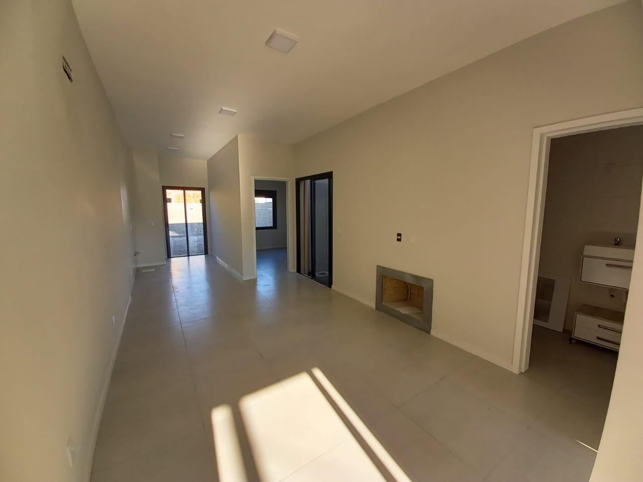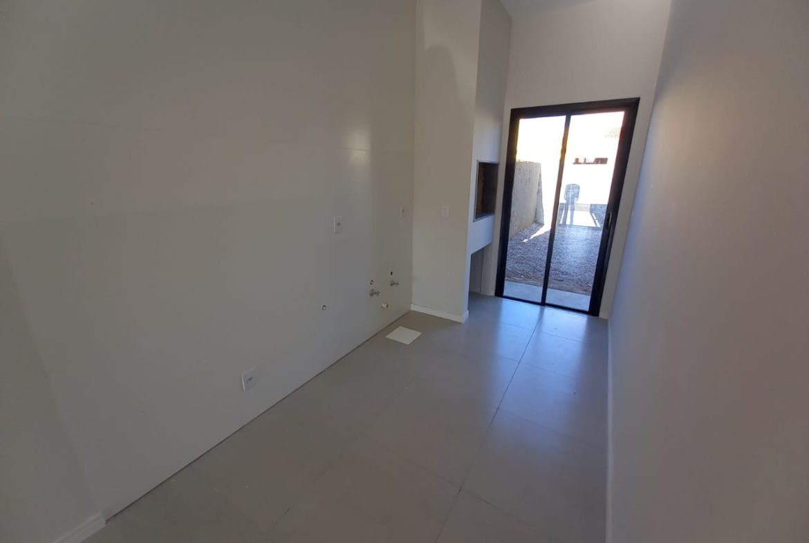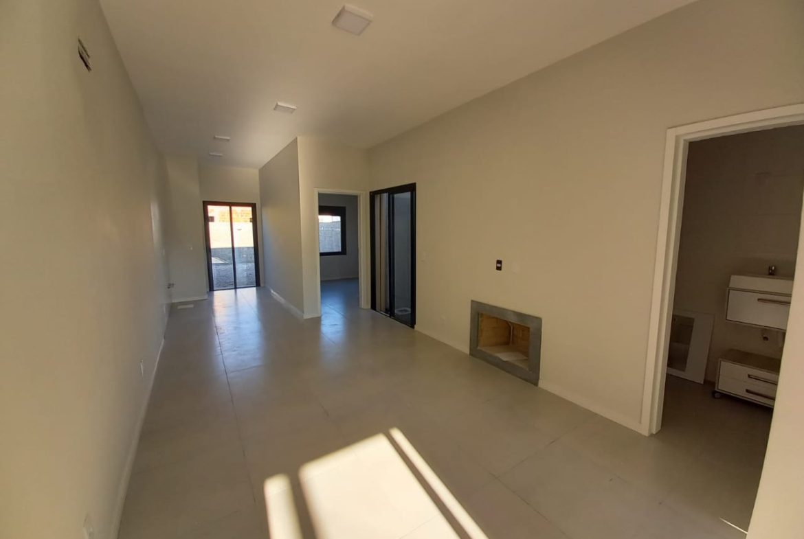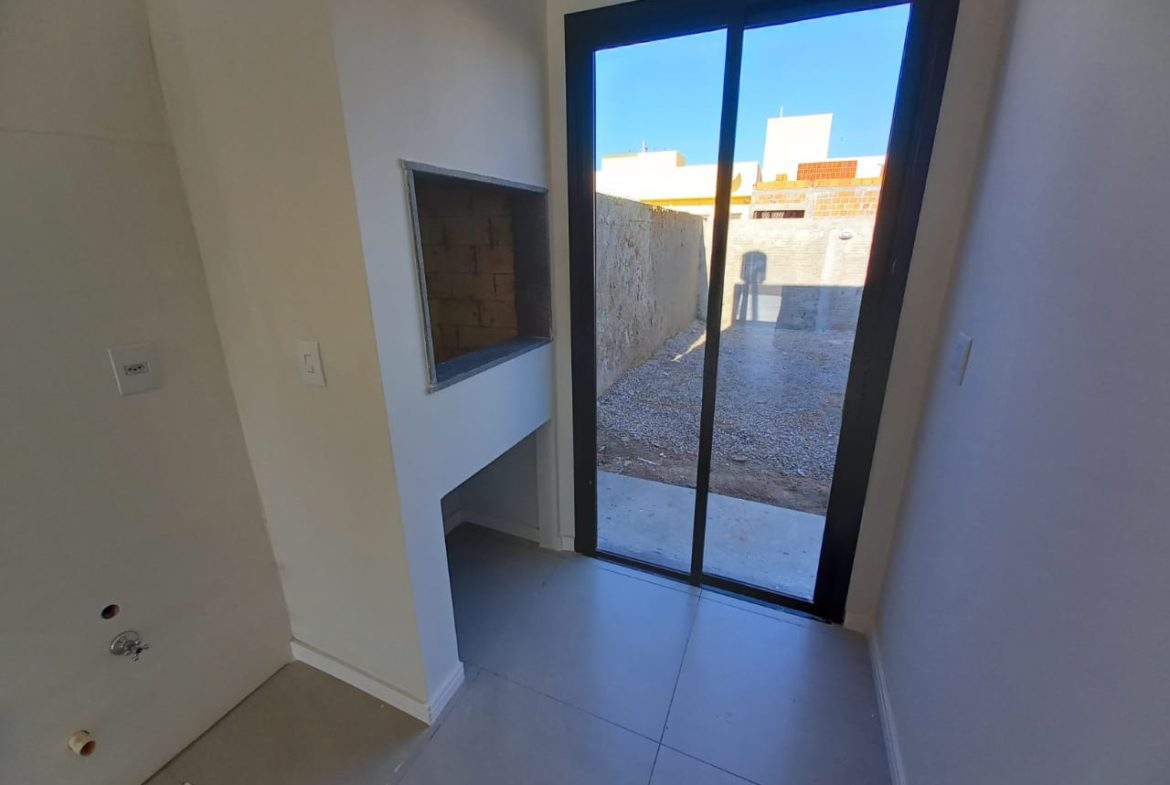 casa nova com 62m de área construída, com 2 dormitórios, sala com lareira, 1 banheiro, cozinha americana, área de serviço, churrasqueira, espera pra água quente, pátio, estrutura pra 2° pavimento.