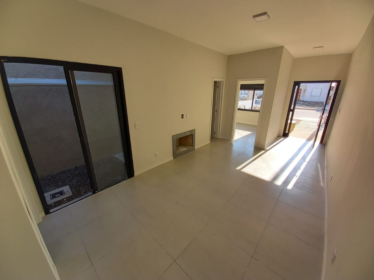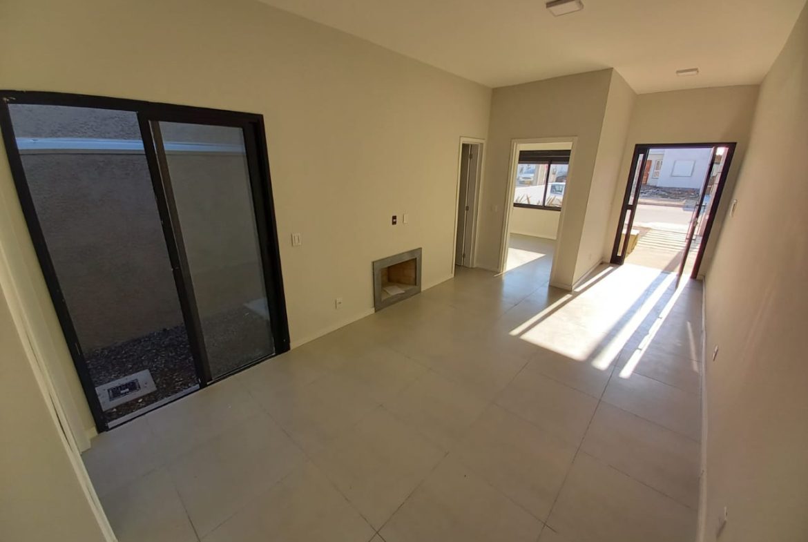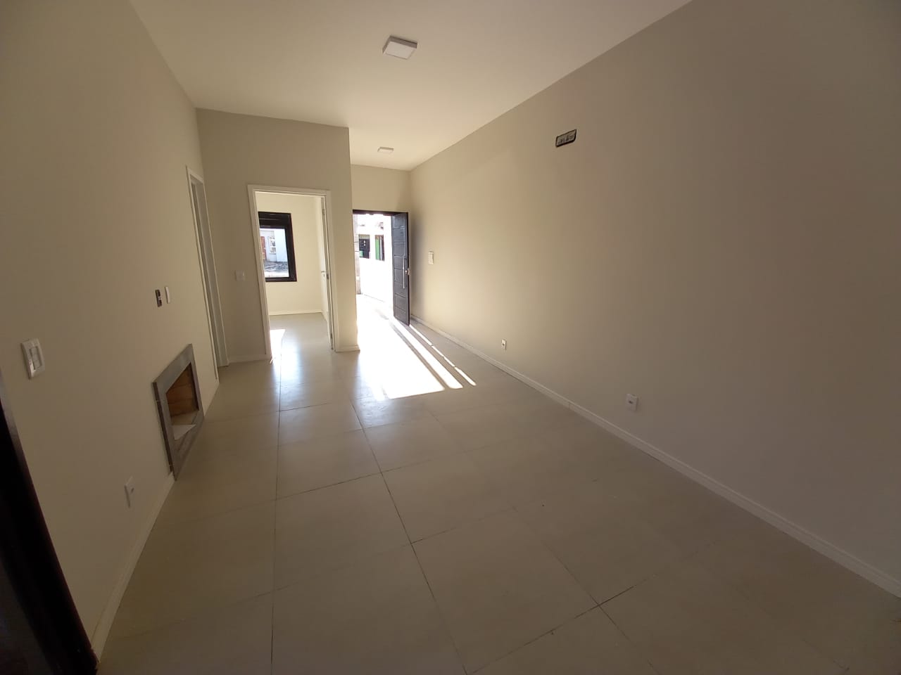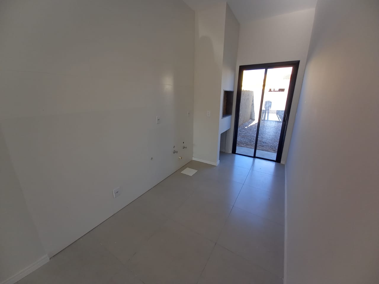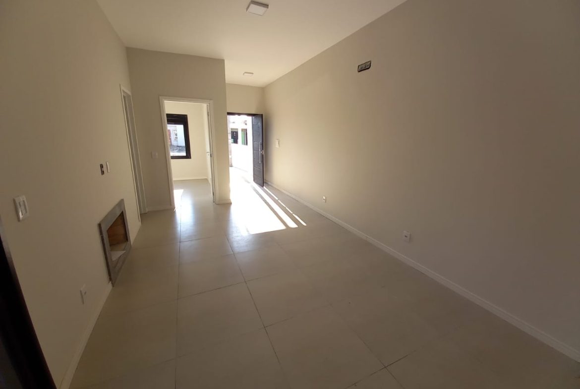 casa nova com 62m de área construída, com 2 dormitórios, sala com lareira, 1 banheiro, cozinha americana, área de serviço, churrasqueira, espera pra água quente, pátio, estrutura pra 2° pavimento.