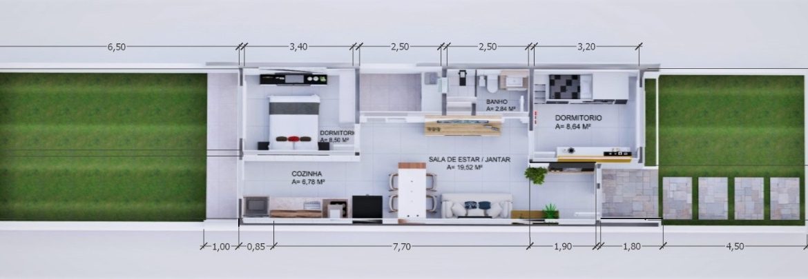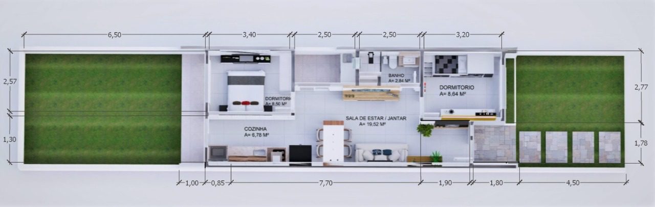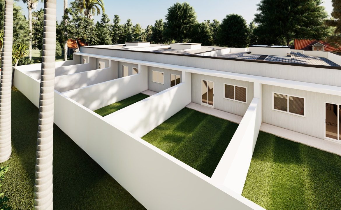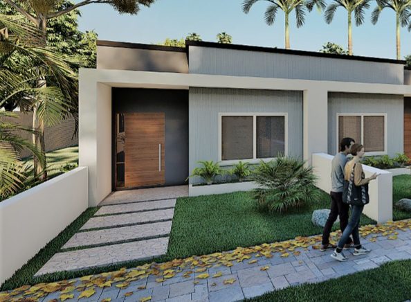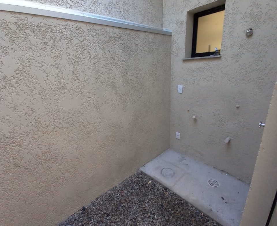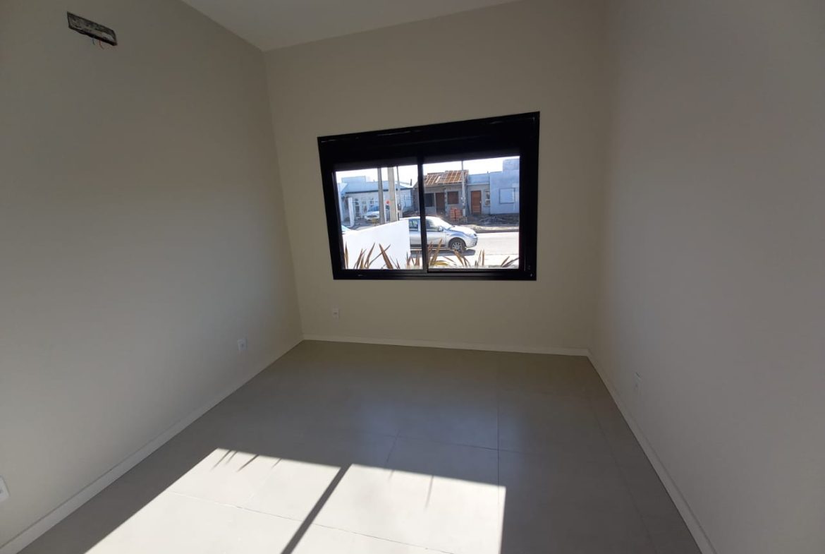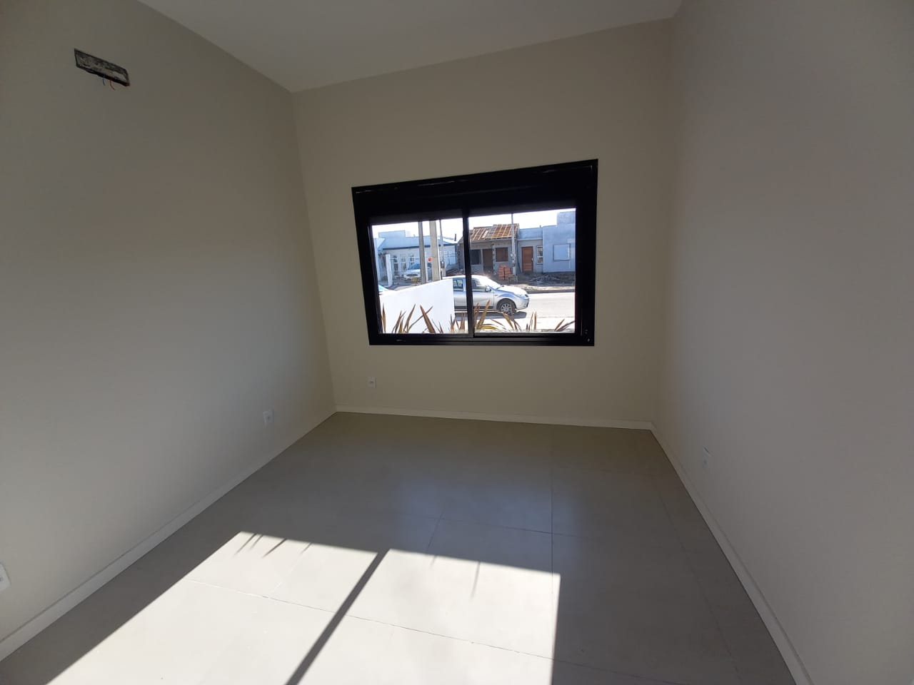 casa nova com 62m de área construída, com 2 dormitórios, sala com lareira, 1 banheiro, cozinha americana, área de serviço, churrasqueira, espera pra água quente, pátio, estrutura pra 2° pavimento.