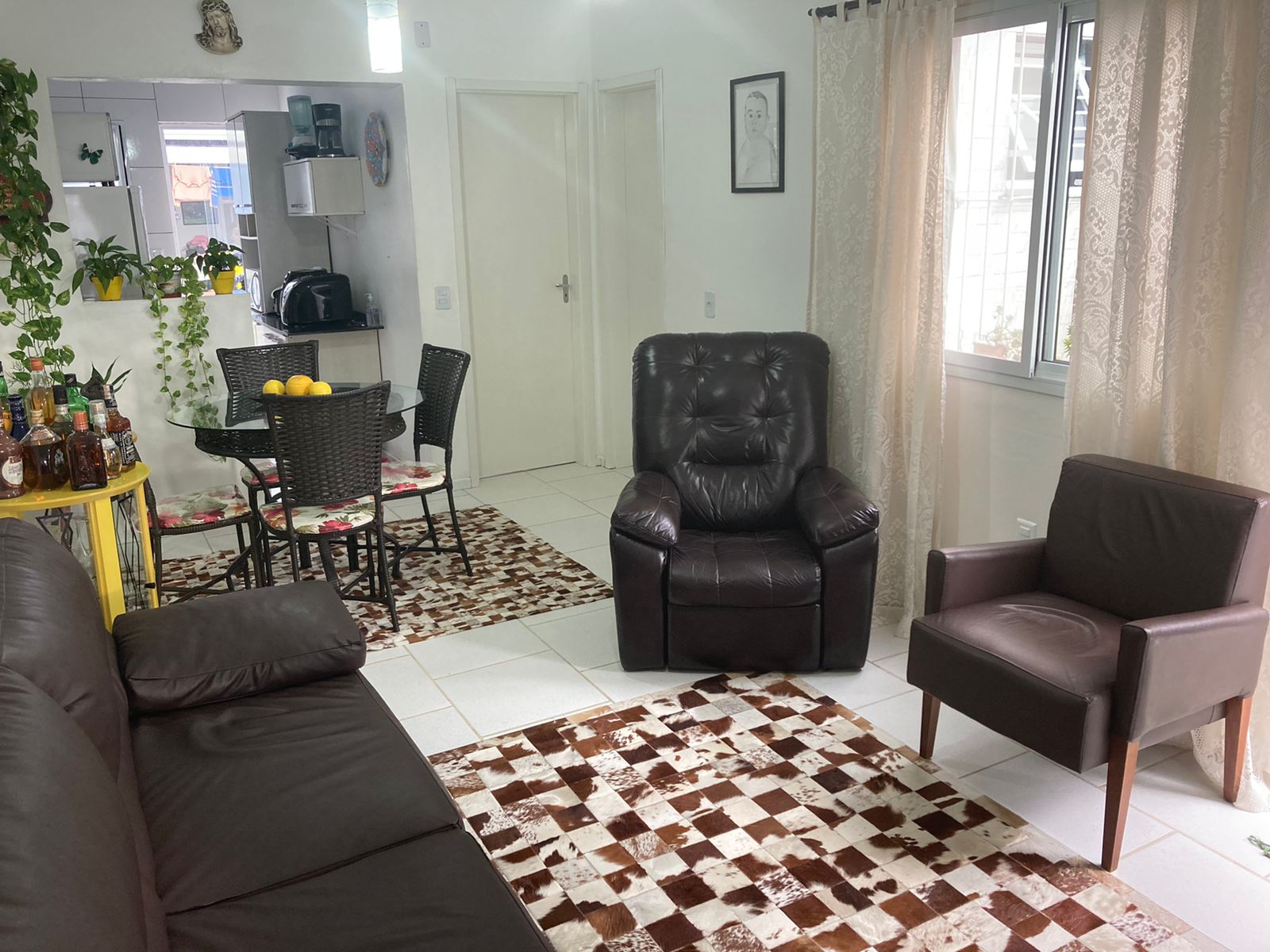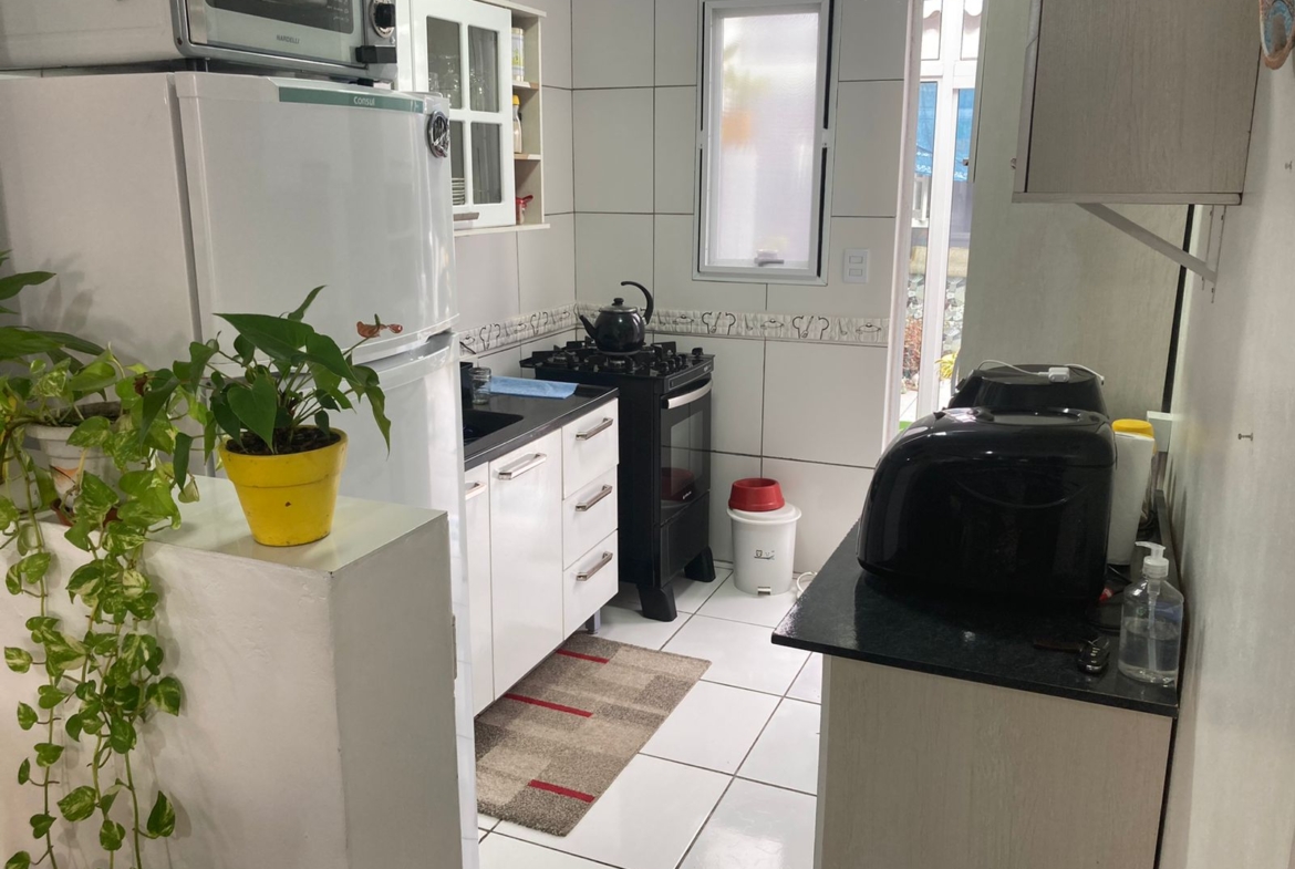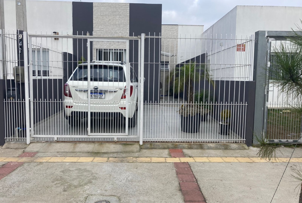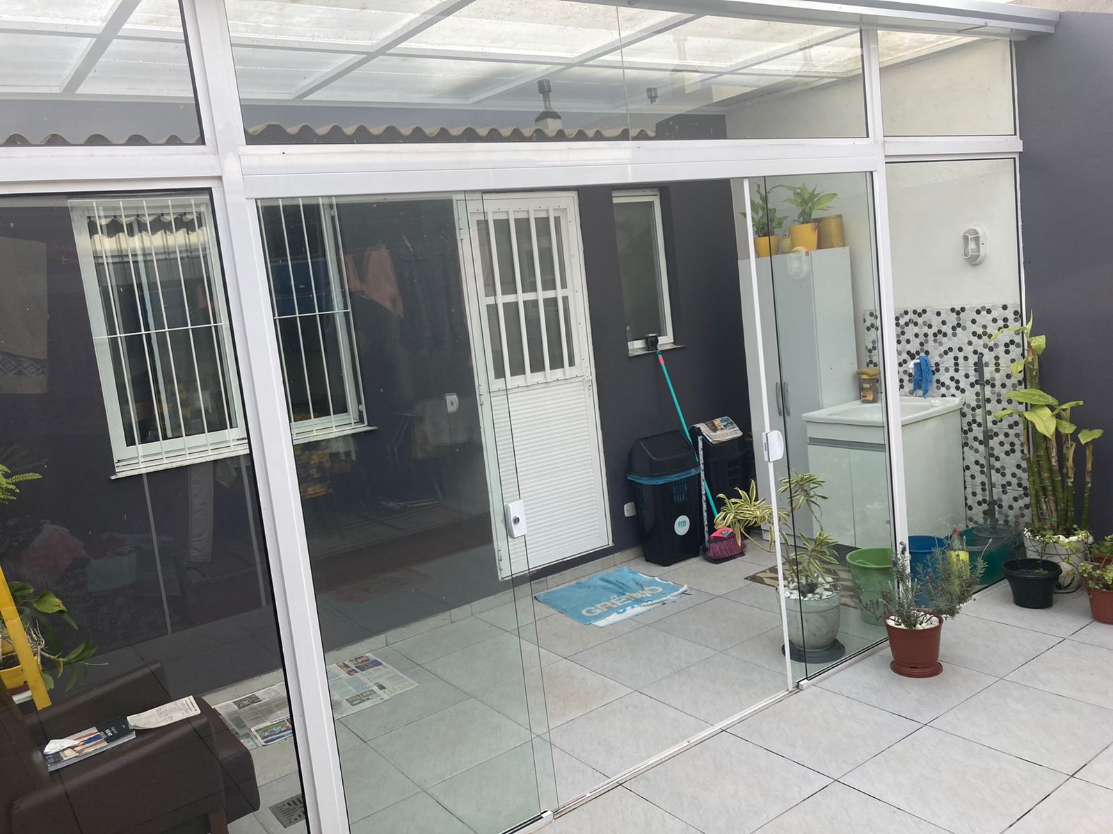 casa térrea com 2 dormitórios, sala, cozinha americana, banheiro, lavanderia, pátio, espaço gourmet com churrasqueira, banheiro auxiliar, garagem no pátio frontal pra 2 carros, portão, aceita financiamento.