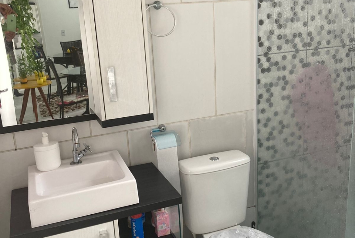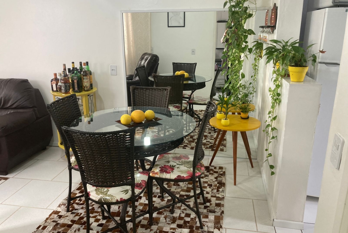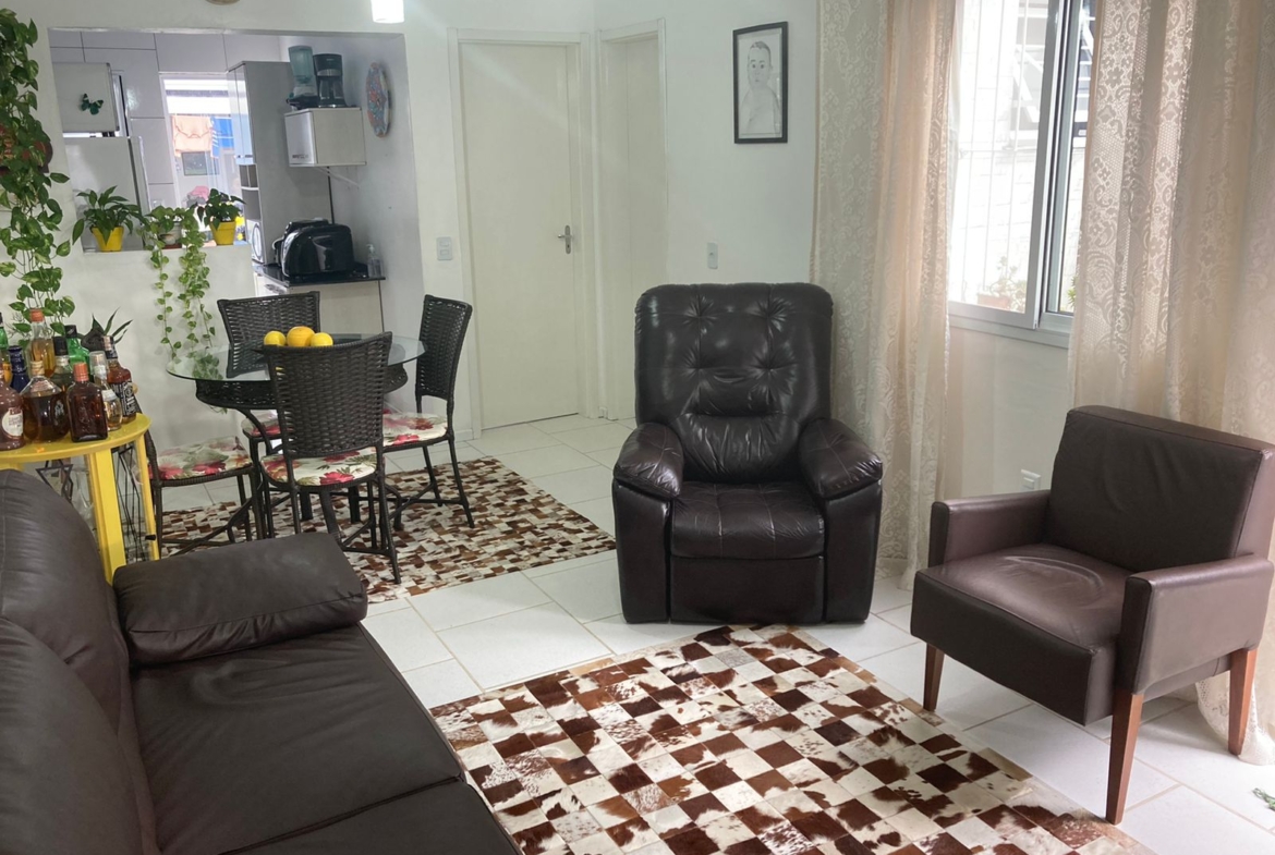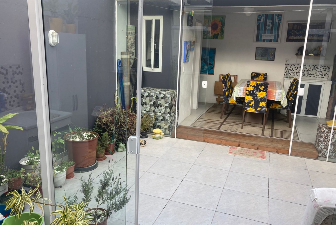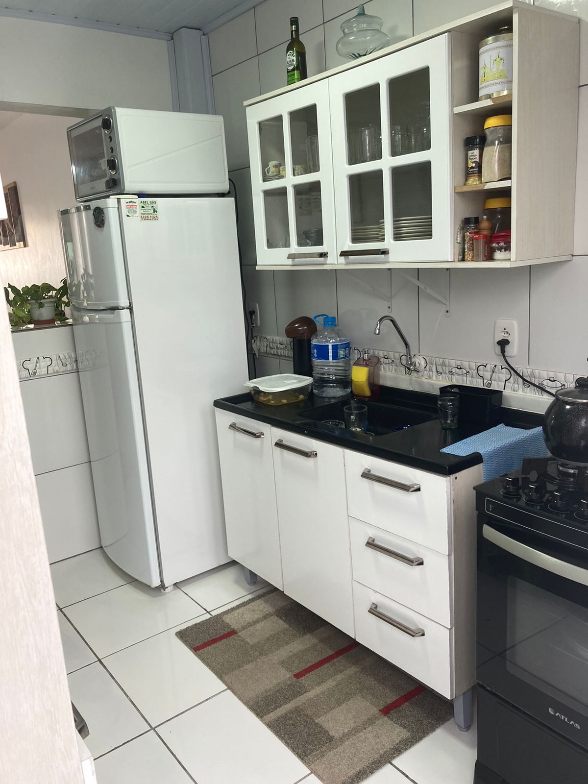 casa térrea com 2 dormitórios, sala, cozinha americana, banheiro, lavanderia, pátio, espaço gourmet com churrasqueira, banheiro auxiliar, garagem no pátio frontal pra 2 carros, portão, aceita financiamento.