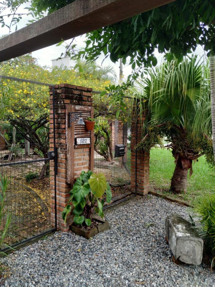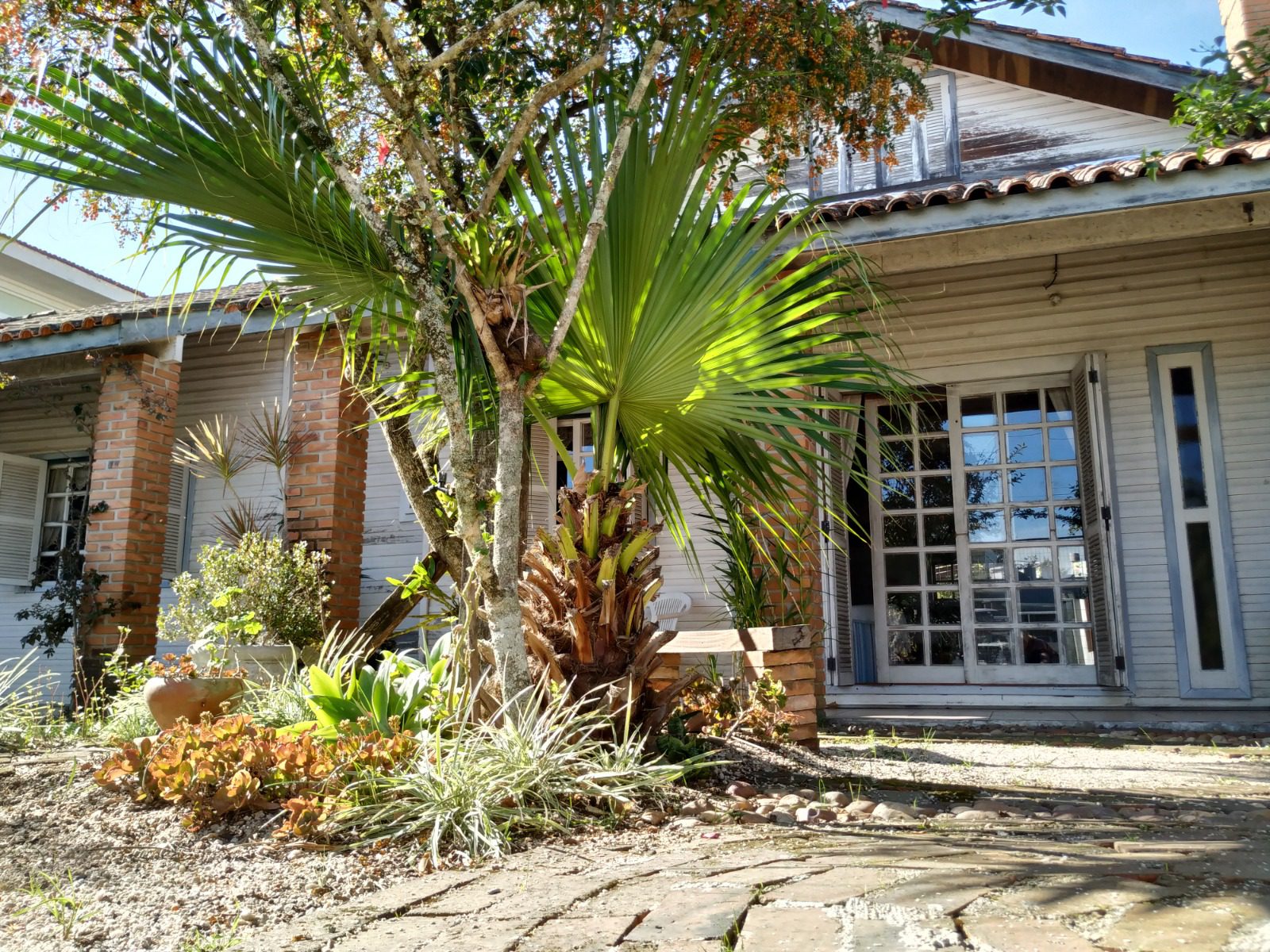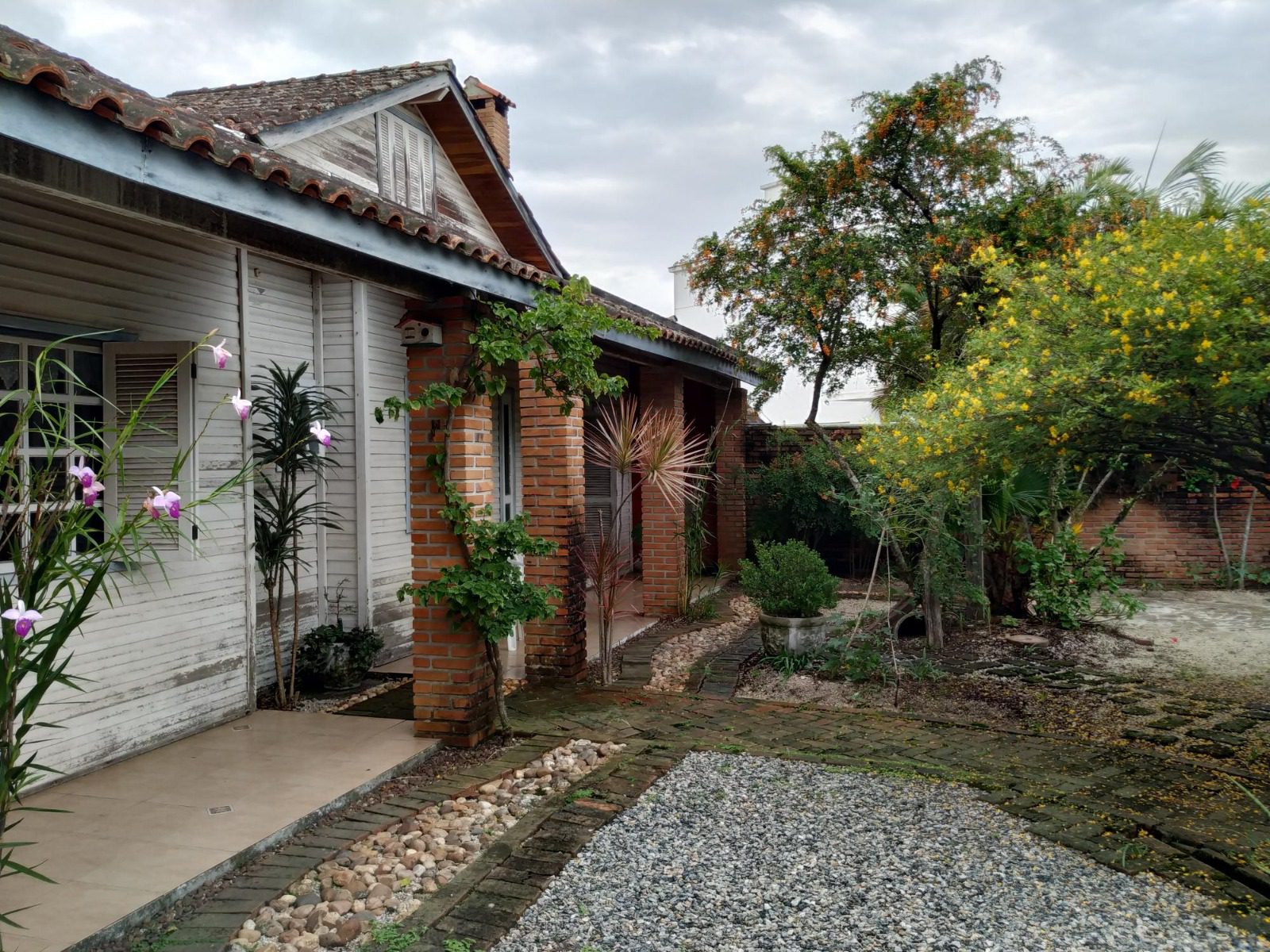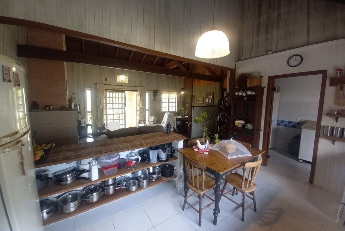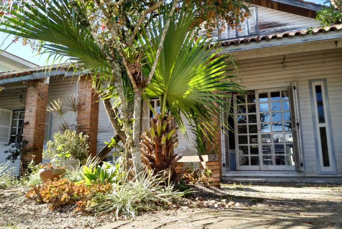 A Casa possui 162m de área total construídos (132m de área privativa fechada e 30m de área coberta de varanda e garagem), a casa é toda térrea composta de 3 dormitórios, sendo 1 suíte, 1 banheiro, lavabo, escritório (com opção para 4º dormitório), sala com lareira, sala de jantar e cozinha americana com ambientes integrados, lavanderia, garagem, amplo pátio frontal e quintal com jardim, plantas, árvores e piscina.