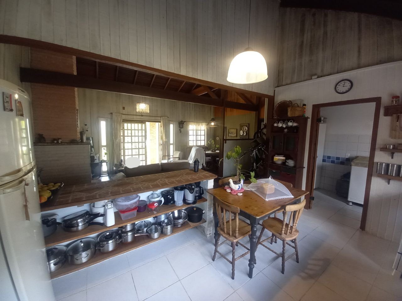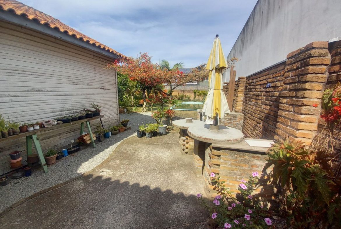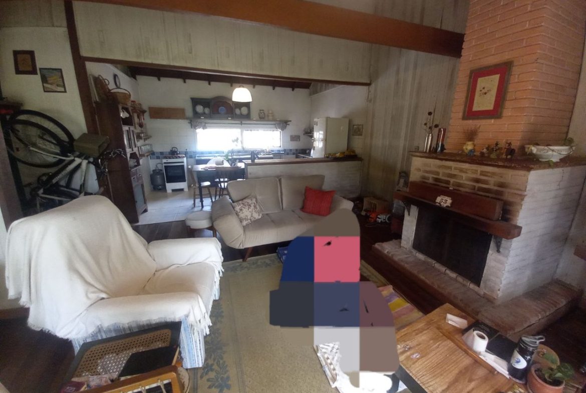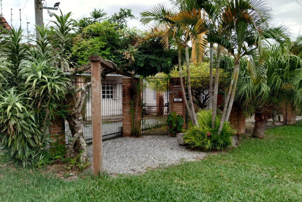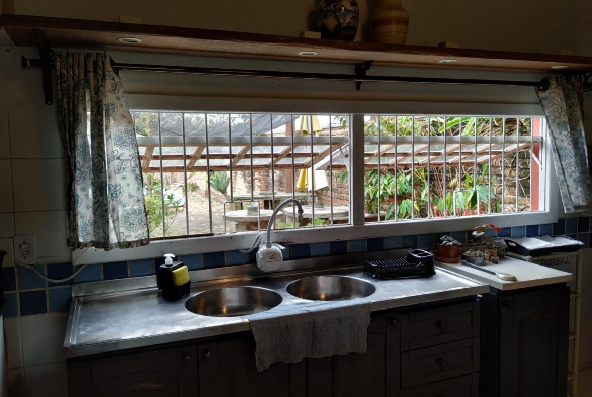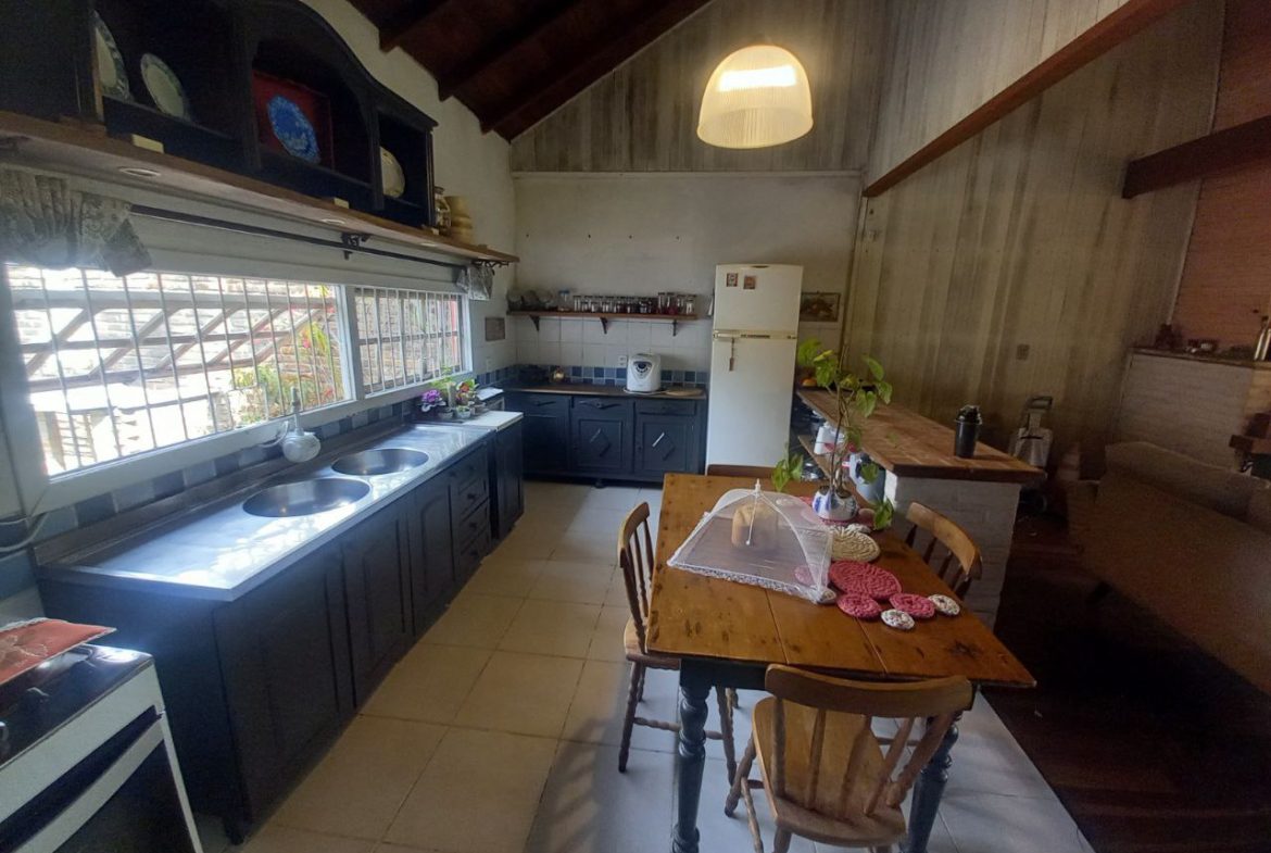 A Casa possui 162m de área total construídos (132m de área privativa fechada e 30m de área coberta de varanda e garagem), a casa é toda térrea composta de 3 dormitórios, sendo 1 suíte, 1 banheiro, lavabo, escritório (com opção para 4º dormitório), sala com lareira, sala de jantar e cozinha americana com ambientes integrados, lavanderia, garagem, amplo pátio frontal e quintal com jardim, plantas, árvores e piscina.