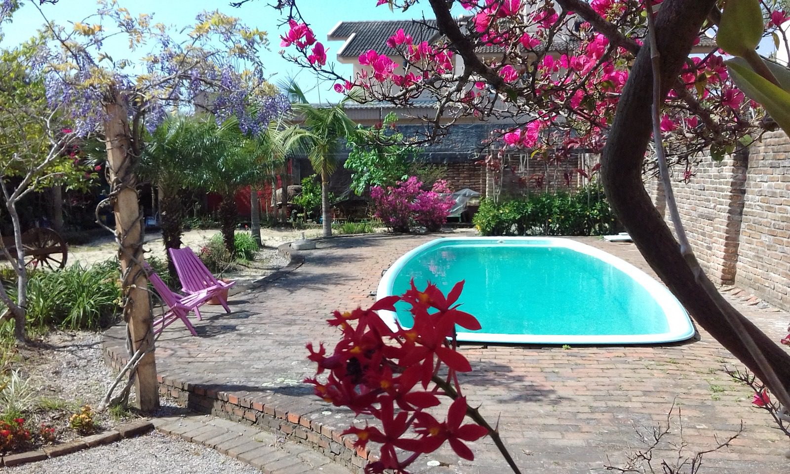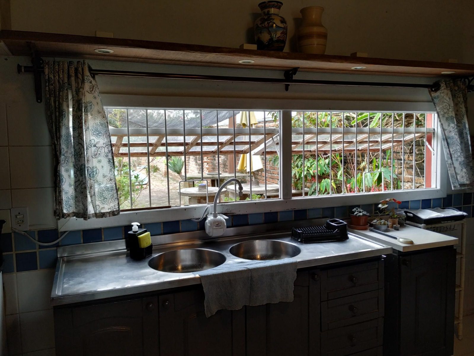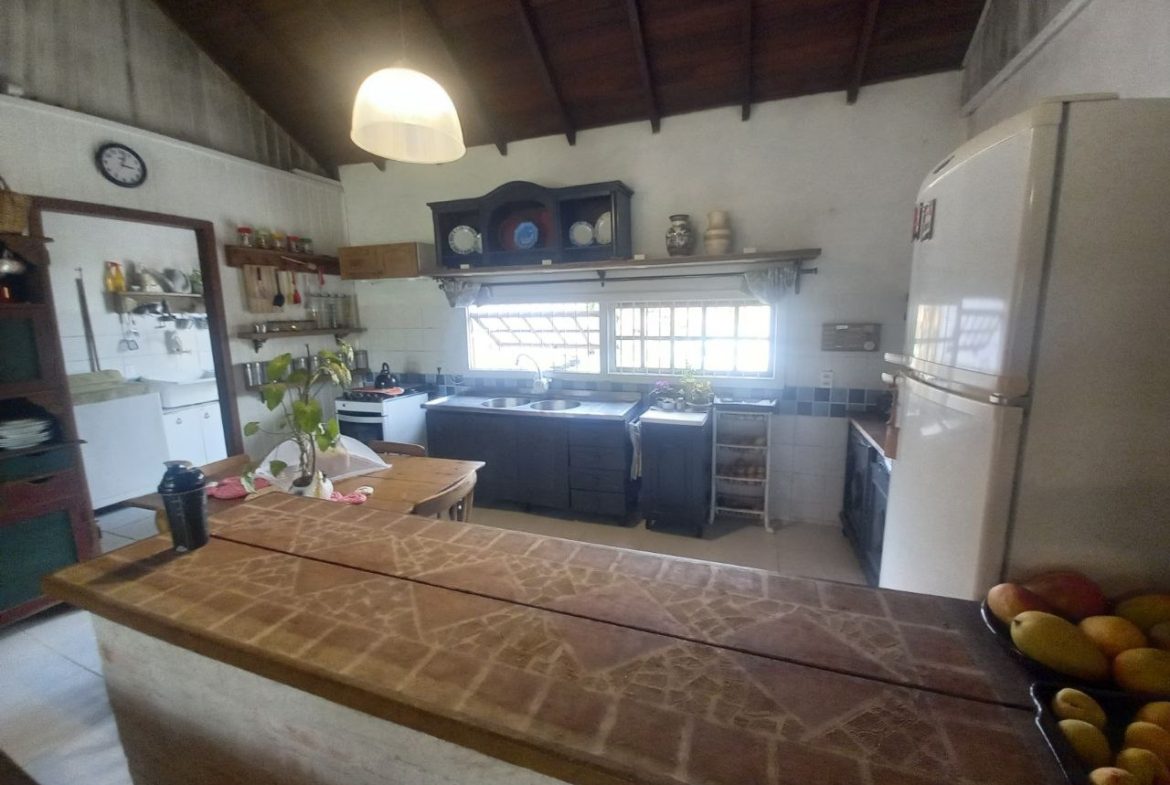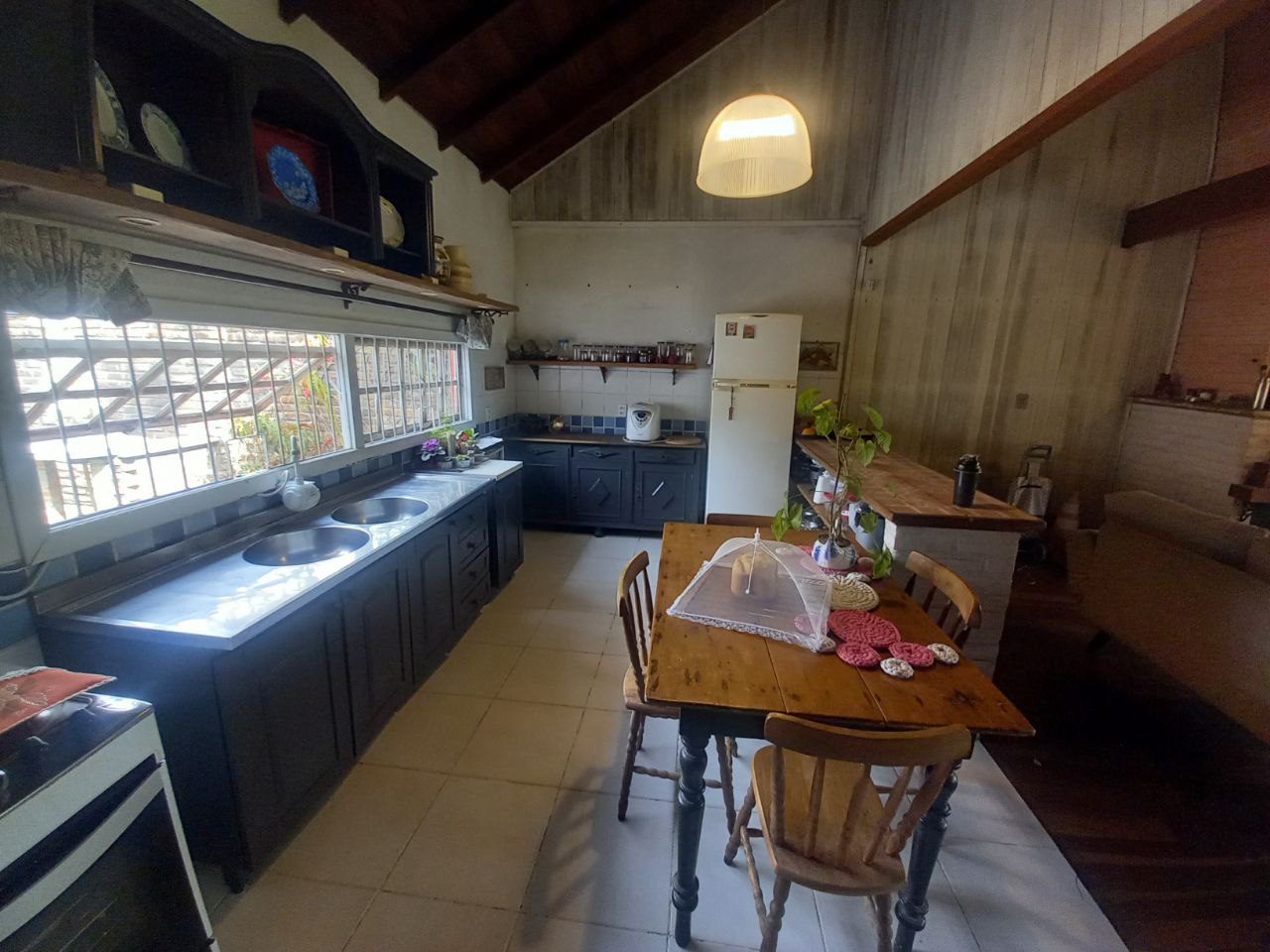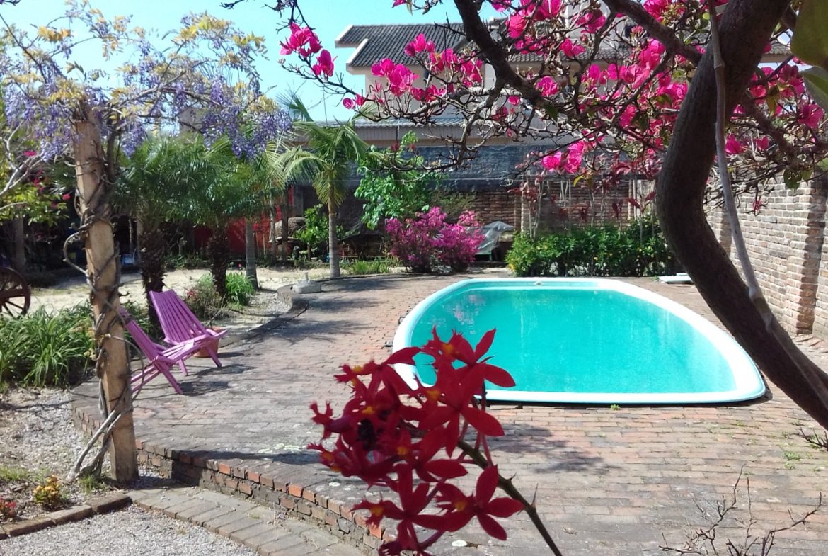 A Casa possui 162m de área total construídos (132m de área privativa fechada e 30m de área coberta de varanda e garagem), a casa é toda térrea composta de 3 dormitórios, sendo 1 suíte, 1 banheiro, lavabo, escritório (com opção para 4º dormitório), sala com lareira, sala de jantar e cozinha americana com ambientes integrados, lavanderia, garagem, amplo pátio frontal e quintal com jardim, plantas, árvores e piscina.