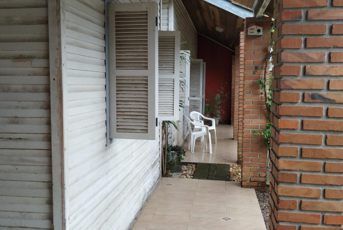 A casa possui madeira duplada (Ipê e angelim, necessita pintura), cozinha e banheiros de alvenaria, o terreno mede 15 x 45 (675m²) com excelente posição solar.