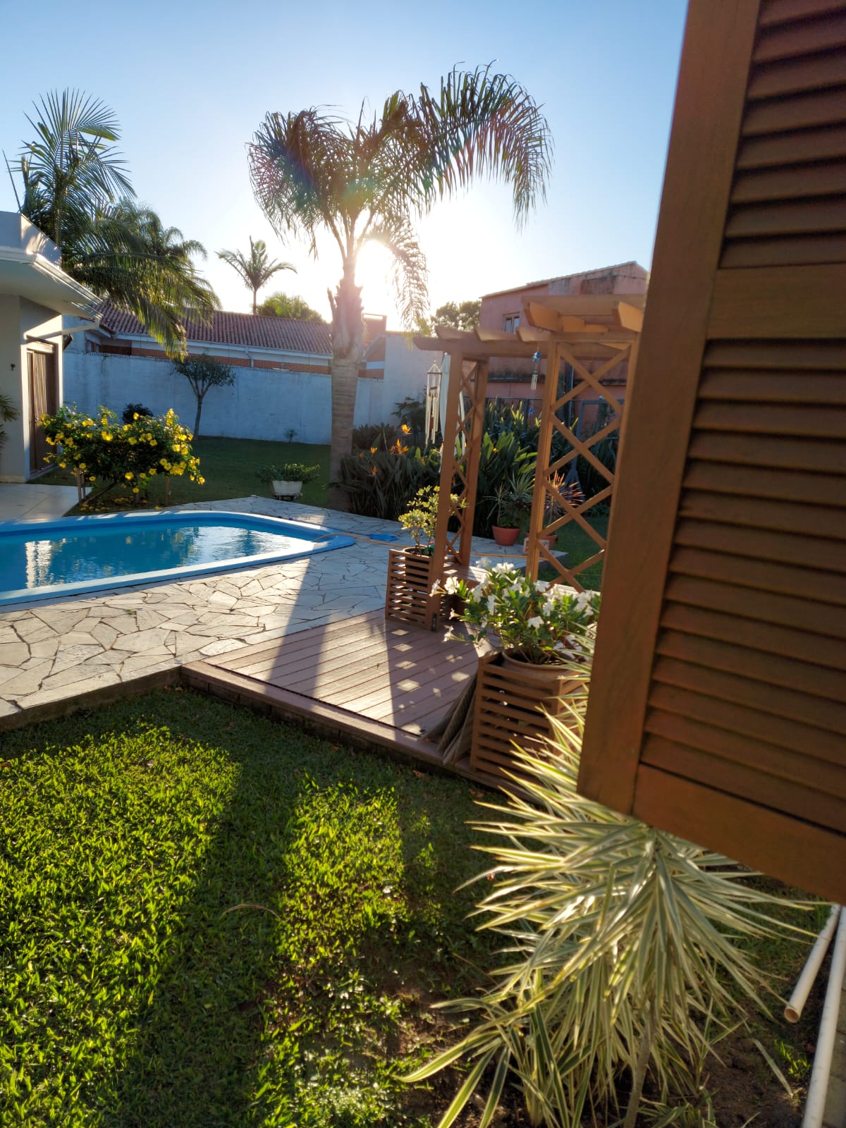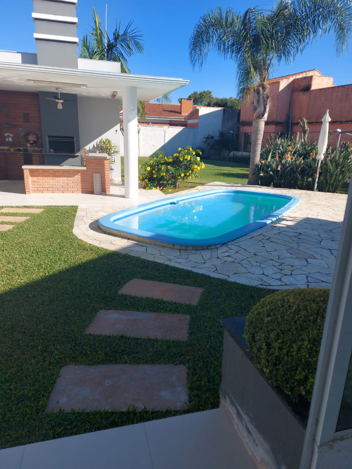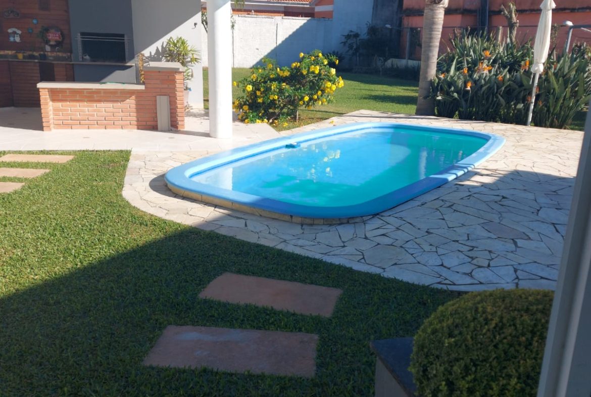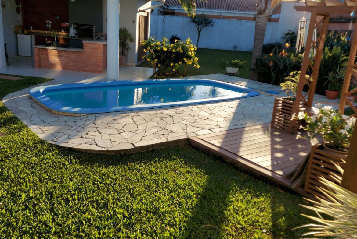 maravilhosa casa no Recanto de Portugal próxima ao clube, com 205m de área construída, bem distribuídos, sala com lareira, sala de jantar, cozinha planejada, lavanderia, 3 dormitórios, sendo 1 suíte e 2 com sacada, espaço gourmet próximo a piscina com banheiro completo, 3 garagens cobertas, pátio frontal e fundos grandes e com ampla jardinagem, extremamente ensolarada, terreno mede 20 x 50. Aceita carro e imóvel de menor valor na negociação. Aceita financiamento