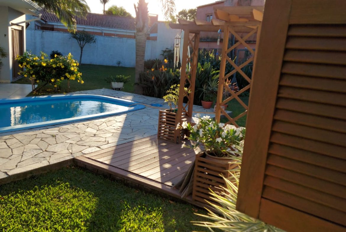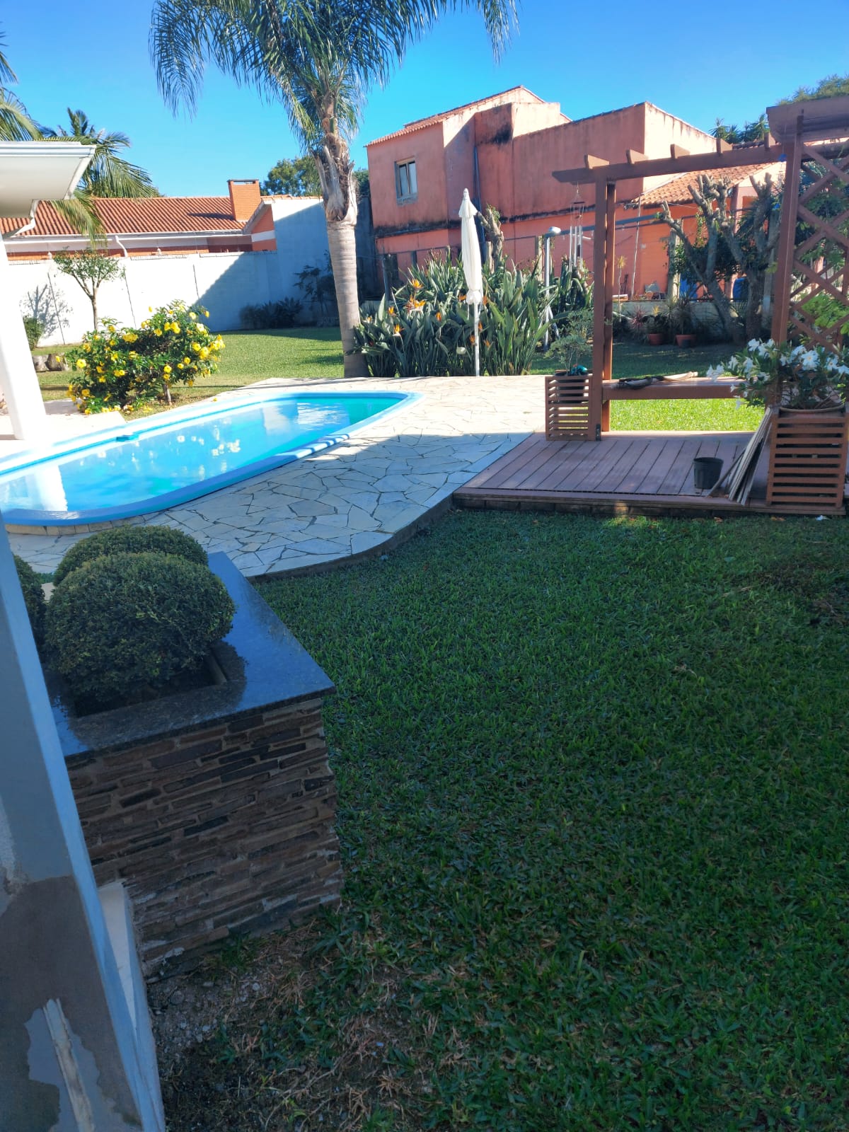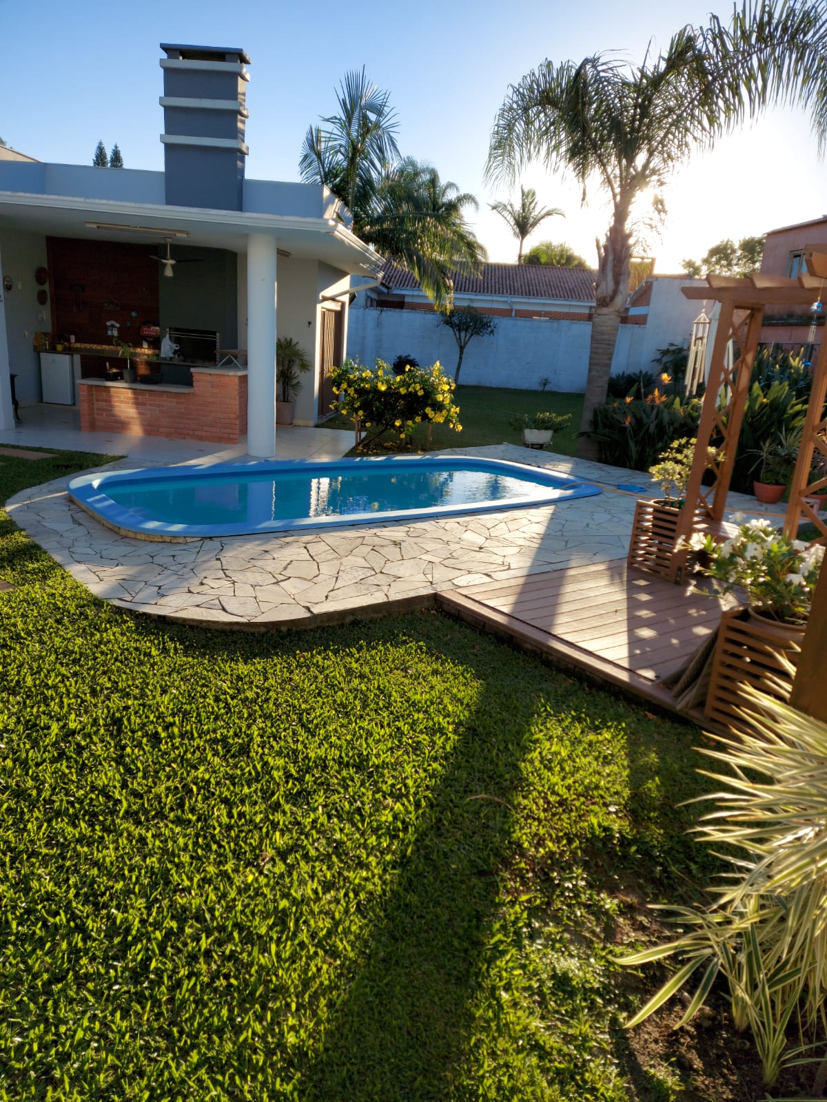 maravilhosa casa no Recanto de Portugal próxima ao clube, com 205m de área construída, bem distribuídos, sala com lareira, sala de jantar, cozinha planejada, lavanderia, 3 dormitórios, sendo 1 suíte e 2 com sacada, espaço gourmet próximo a piscina com banheiro completo, 3 garagens cobertas, pátio frontal e fundos grandes e com ampla jardinagem, extremamente ensolarada, terreno mede 20 x 50. Aceita carro e imóvel de menor valor na negociação. Aceita financiamento