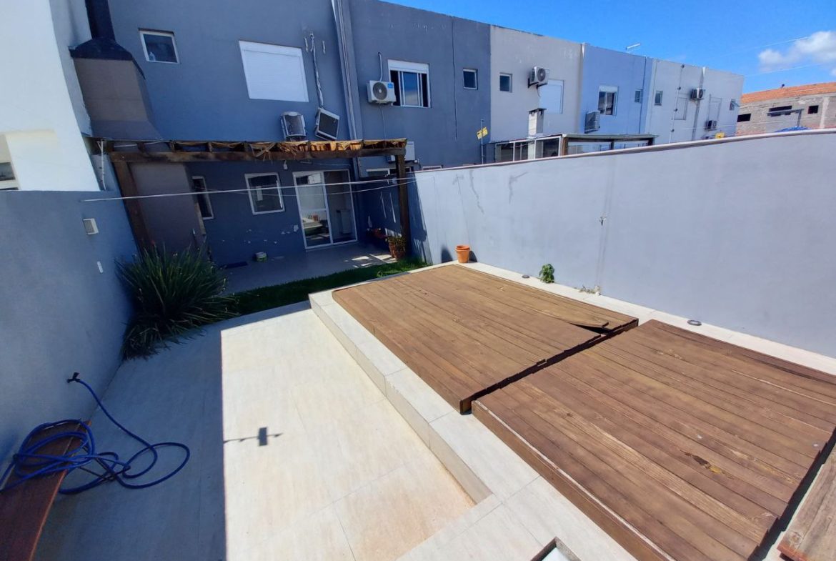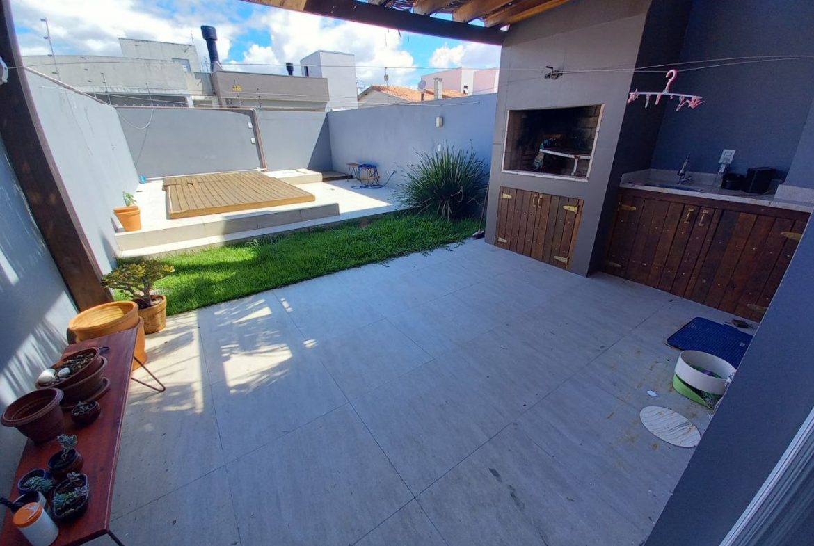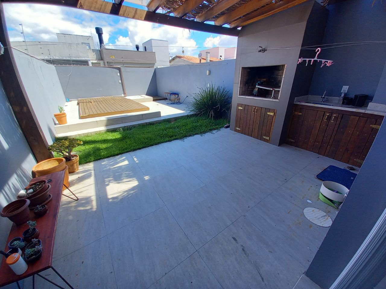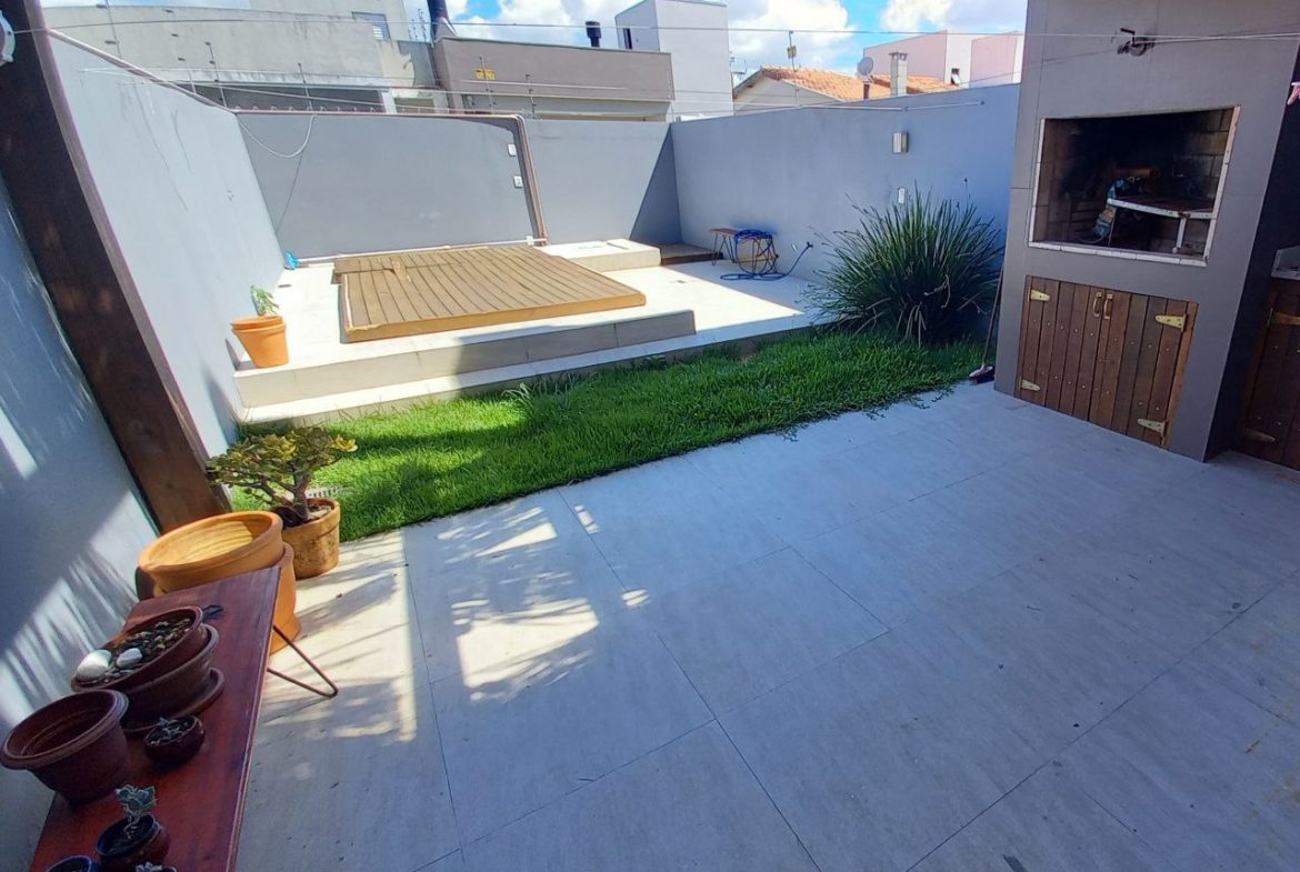 amplo sobrado com 95m de área construída, com 2 suítes master (closet e banheiro) e 1 delas com sacada, sala, lareira, lavabo, cozinha com planejados, lavanderia, varanda gourmet com churrasqueira / parrilla, piscina com aquecimento, cobertura e deck de madeira, garagem coberta pra 2 carros, portão automático, 3 ar condicionado, aceita financiamento. Agende uma visita!