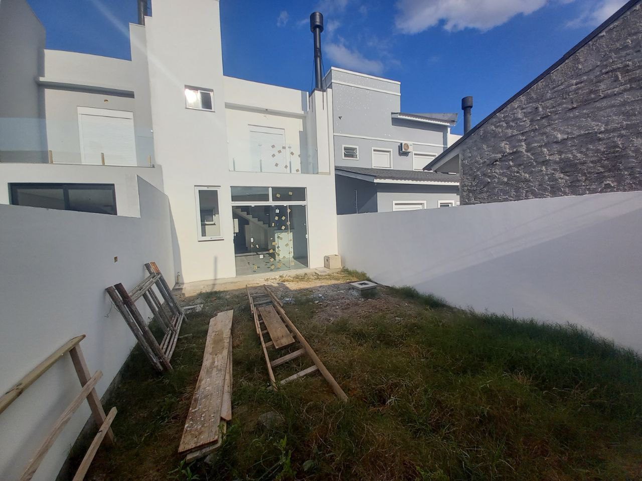 Lindo sobrado com 2 suítes amplas e com sacadas, 92m de área construída, sala ampla com lareira, sala de jantar, cozinha americana, espaço gourmet com churrasqueira, lavabo, áreade serviço, agua quente, pátio ensolarado, murada, em fase finalconstrução, entrega em 2 meses.Financia.