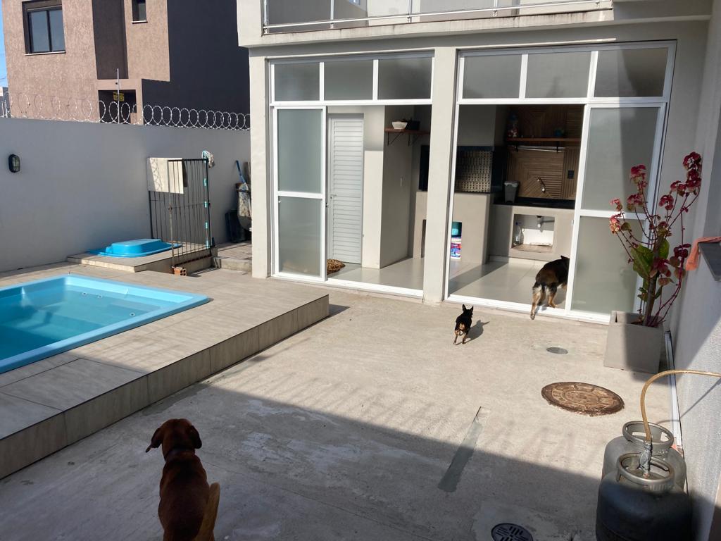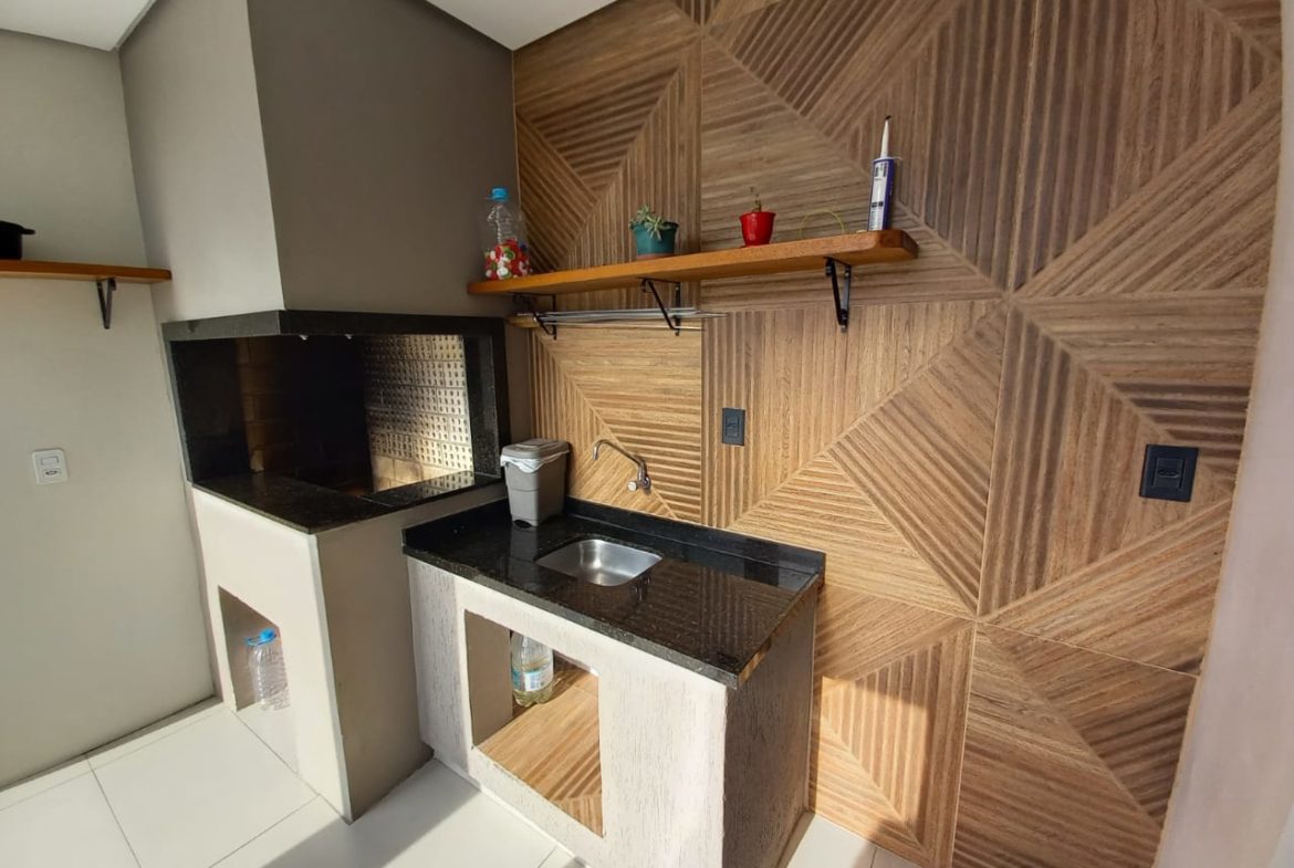 lindo sobrado com design moderno, 150m de área constrúida com 3 amplos dormitórios com móveis planejados, sendo 1 suíte com sacada, sala de estar com lareira, sala de jantar, cozinha planejada, lavabo, banheiro social, lavanderia, espaço gourmet, pátio com piscina, garagem coberta, terreno de 10 x 19, ensolarado.
