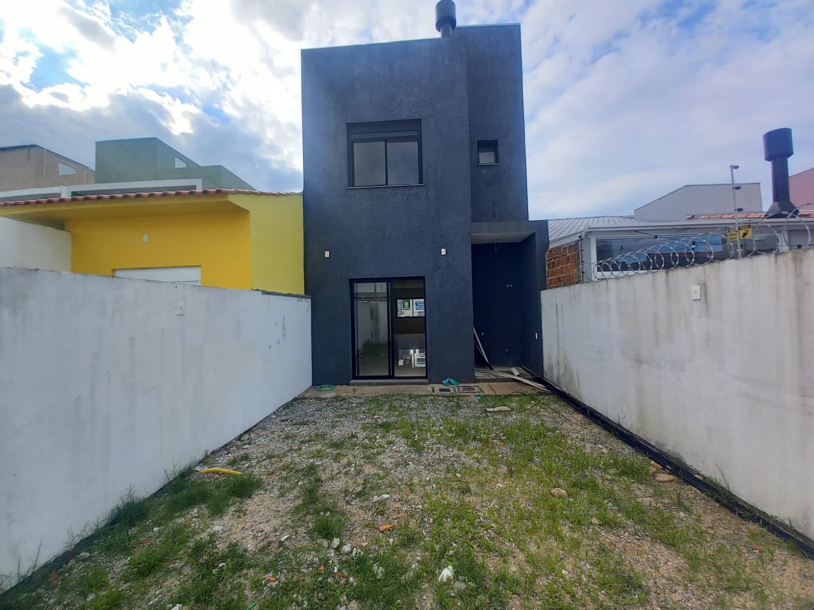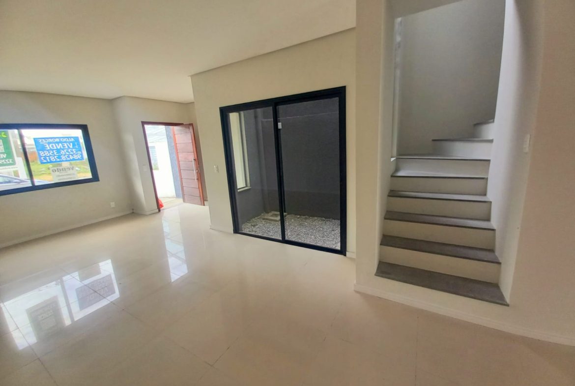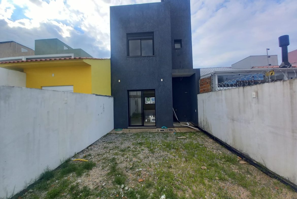 sobrado novo com 120m de área construída, 3 suítes, sala estar, jantar, cozinha americana com churrasqueira integrada, lavabo, lavanderia, área de luz interna, pátio, aceita proposta, financiamento e carro na negociação. Agende uma visita!