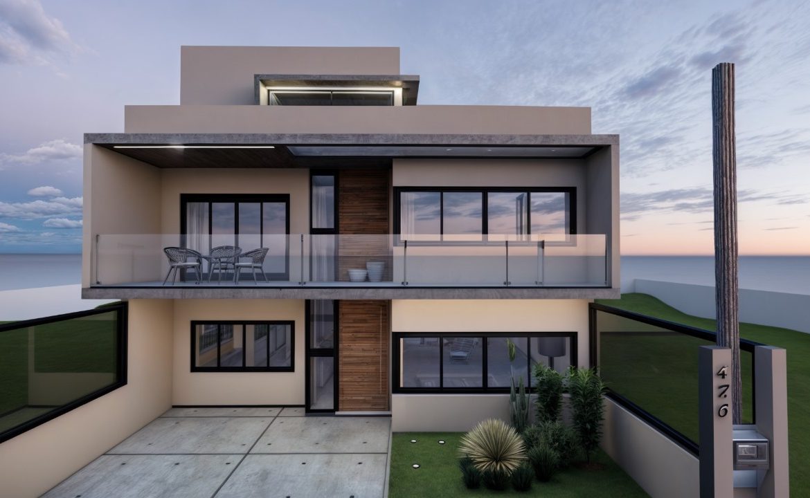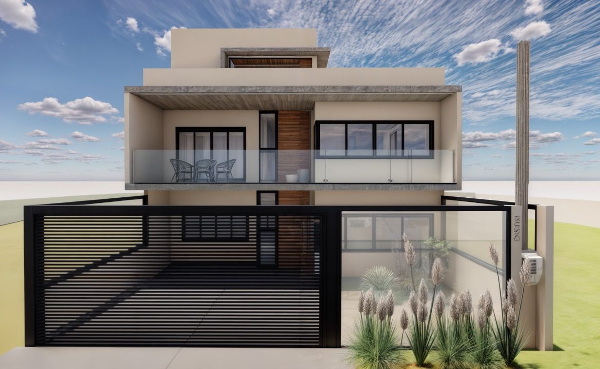 lindo projeto com 298m de área construída bem distribuídos em 3 andares, o piso térreo inclui sala de estar, sala íntima com lareira, sala de jantar, cozinha americana, lavabo, lavanderia e pátios frontal e fundos, o 2° piso é reservado á 4 amplos dormitórios, sendo 2 suítes, e 1 deles com sacada frontal, 1 banheiro social, no 3° piso temos o espaço gourmet com churrasqueira, 1 home office (opção de 5° dormitório), 1 banheiro e grande terraço medindo 33m² com vista panorâmica, o projeto inclui esperas pra split em todas as peças e aquecimento a gás de agua pra todos os banheiros, terreno mede 10 x 19, já é possível visitação uma vez que o imóvel se encontra em fase de acabamentos com prazo máximo de conclusão estimado em 5 meses, aceita financiamento (depois de pronto), agende uma visita!