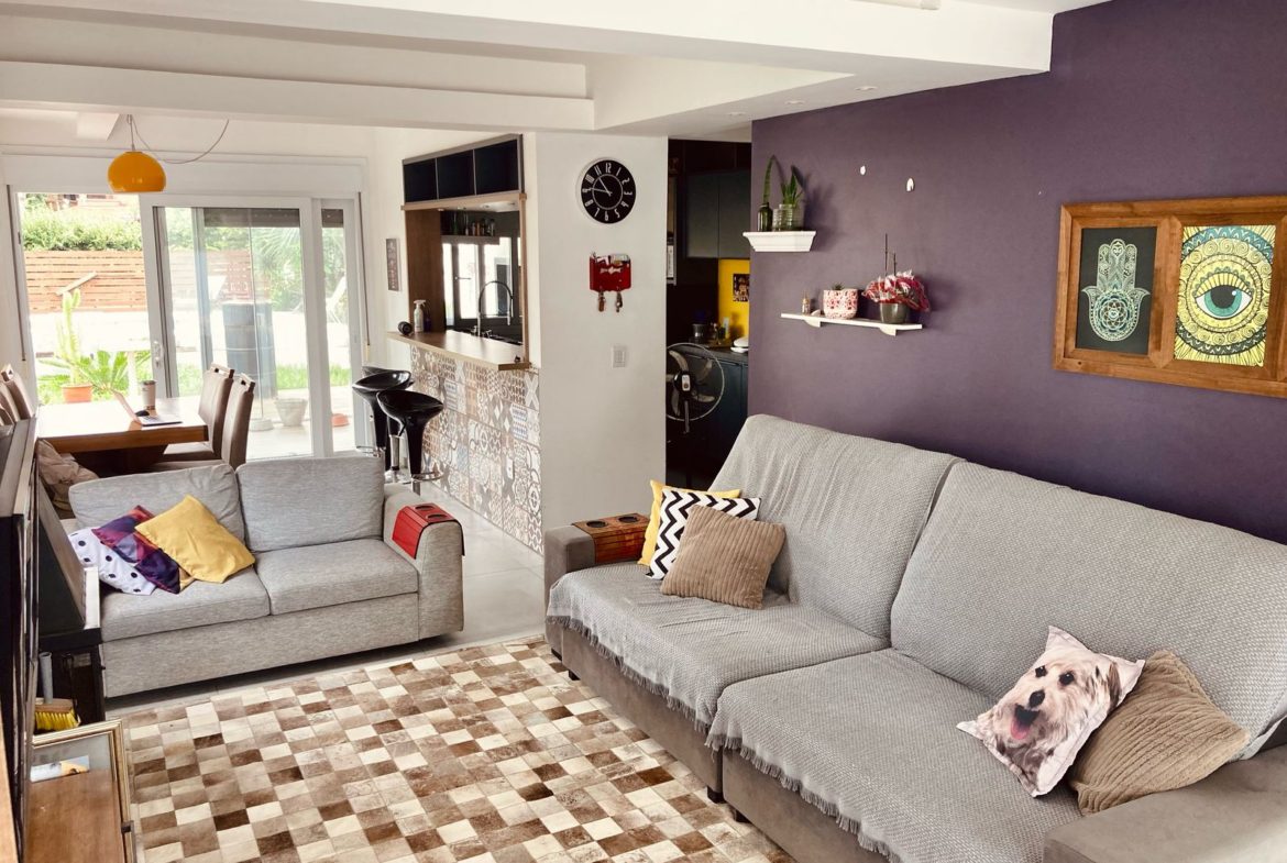 Marailhoso Sobrado no Recanto de portugal, com 135m² de área construída , em terreno de 10×50(500m²) .O sobrado possui 2 amplos dormitórios na parte, os dois com ampla sacada de frente, lateral e fundos, sendo um deles com espaço closet. na parte superior, além do web space, também possui área de luz. Na parte inferior, possui sala 3 ambientes, com lareira , cozinha planejada, lavanderia separada , banheiro social, separando a parte intima da parte social de acesso individual a pia , área de luz, e dispensa fechada. Possui 1 vaga para veículo coberta e espaço para até 8 carros em vaga descoberta, além da área gourmet toda envidraçada com churrasqueira, com acesso ao deck e a piscina ampla , pátio muito amplo com árvores frutíferas e amplo espaço canil. O sobrado é muito ensolarado, com todas aberturas em PVC com telas. Todo projetado com as aberturas para frente norte, leste e oeste. Financia e aceita veículo mediante avaliação. Marque sua visita.